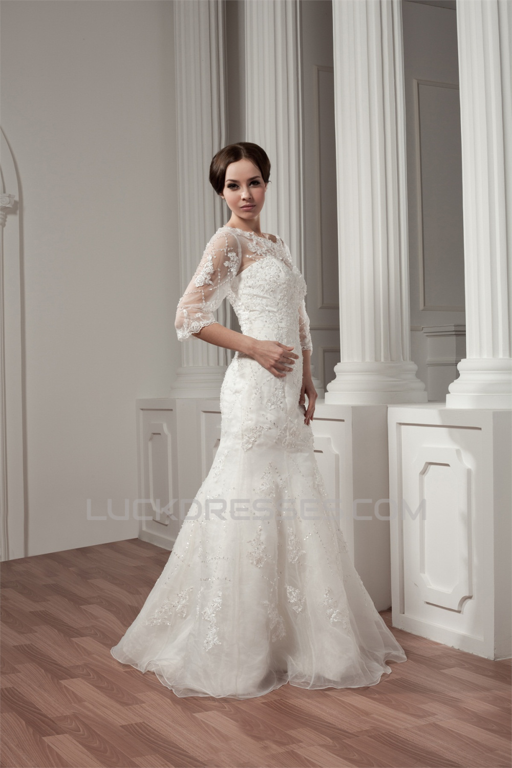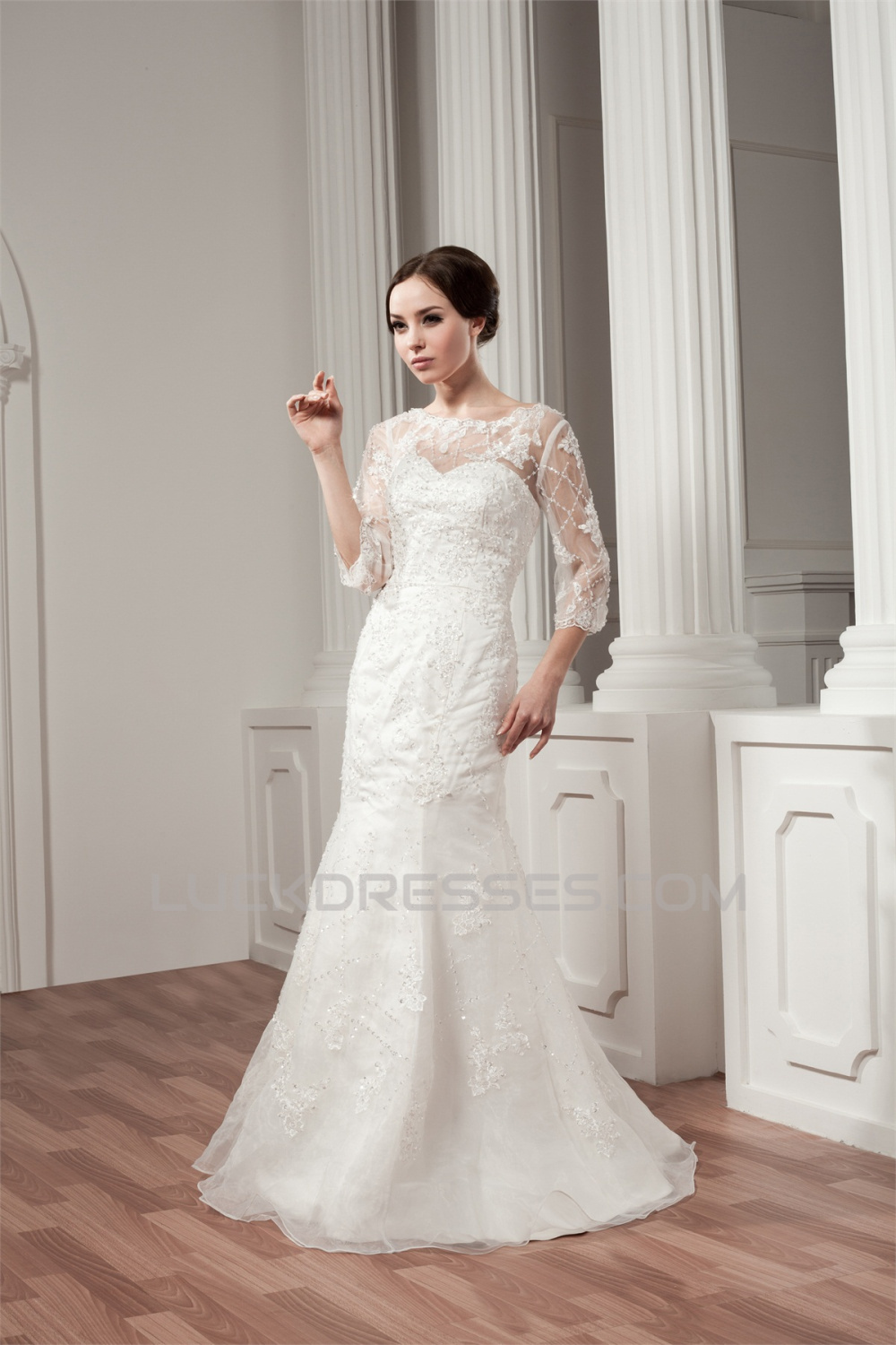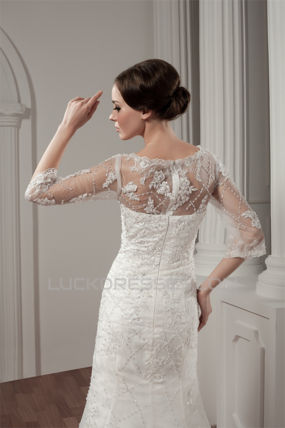 -50% 3/4 Length Sleeve Satin Portrait A-Line Most Beautiful Beaded Lace Wedding Dresses 2030527