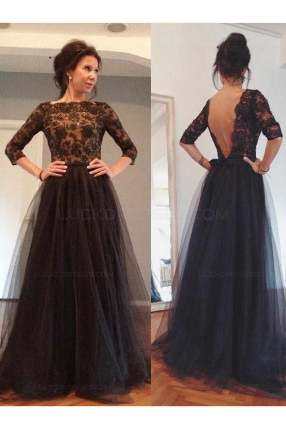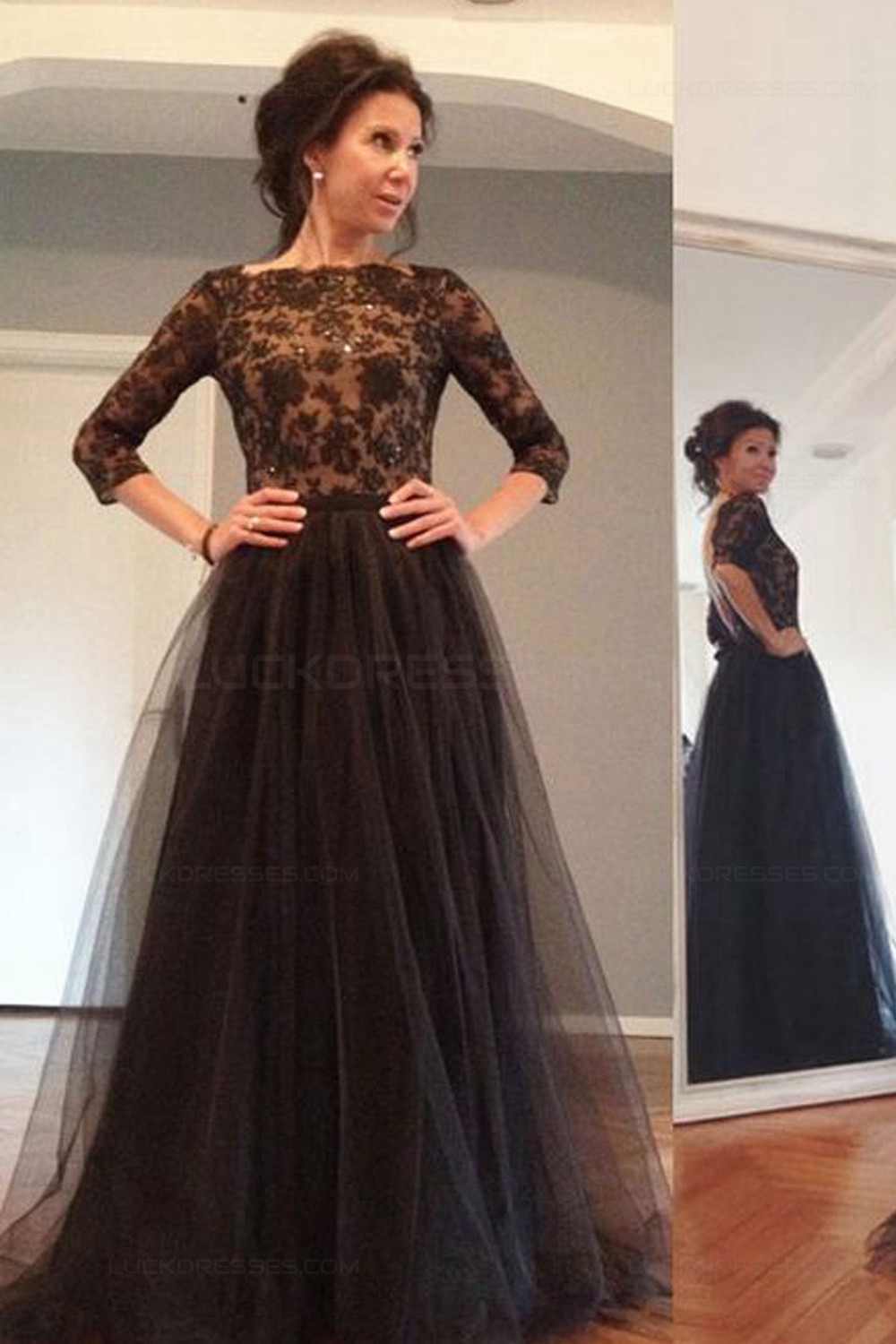 3/4 Length Sleeves Lace Top Long Black Mother of The Bride Prom Evening Formal Dresses 3020147