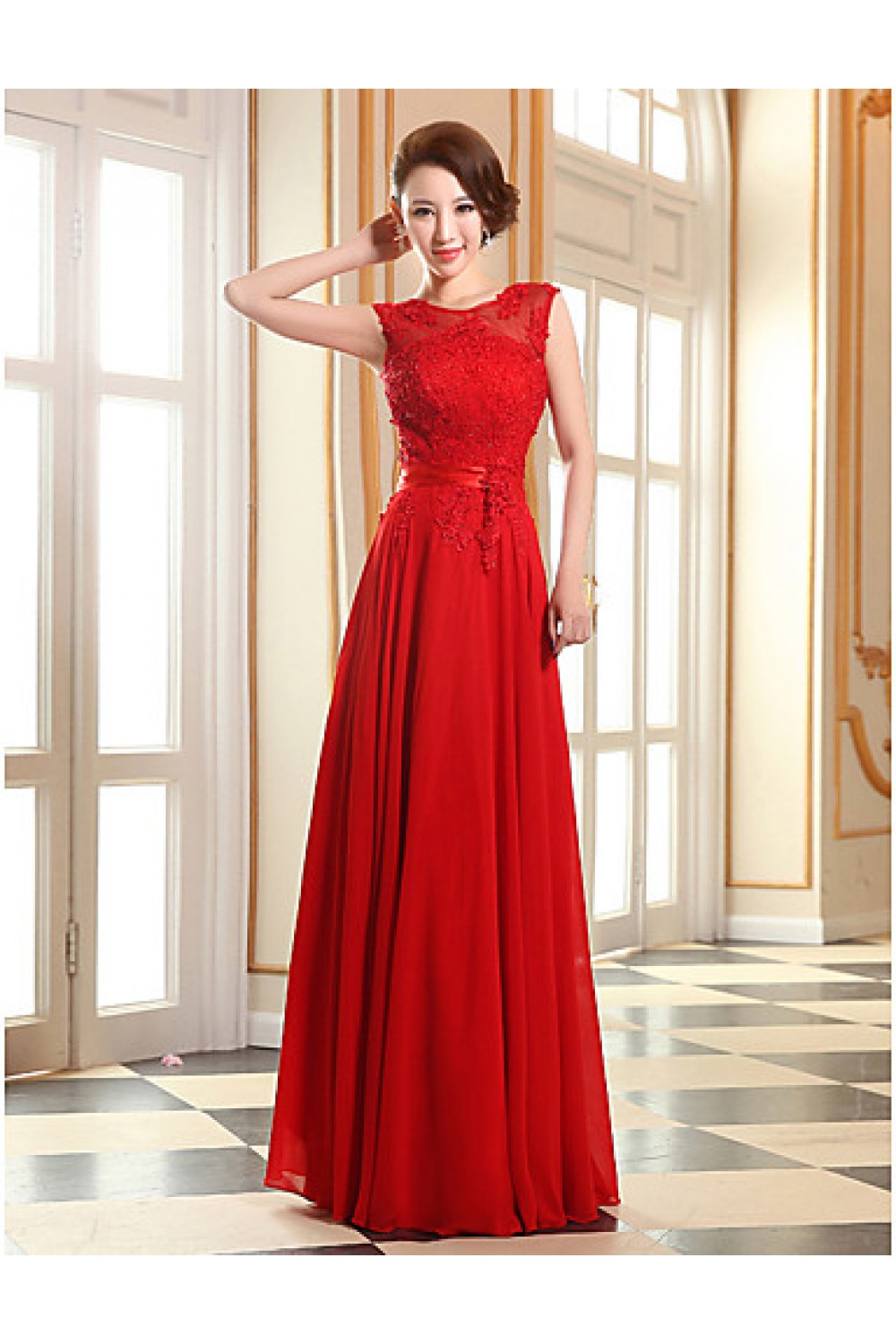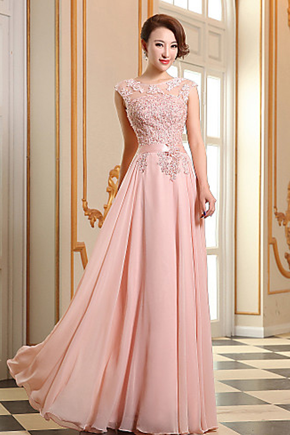 A-Line Beaded Applique Long Chiffon Prom Evening Formal Dresses ED010076