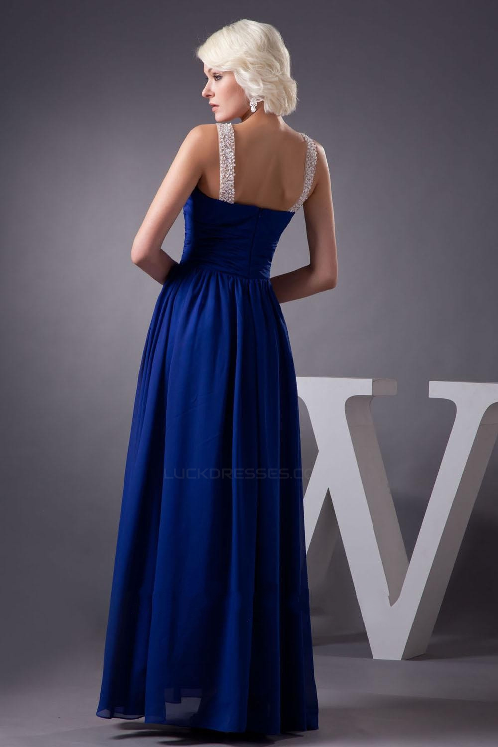 A-Line Beaded Blue Long Chiffon Prom Evening Formal Dresses ED010917