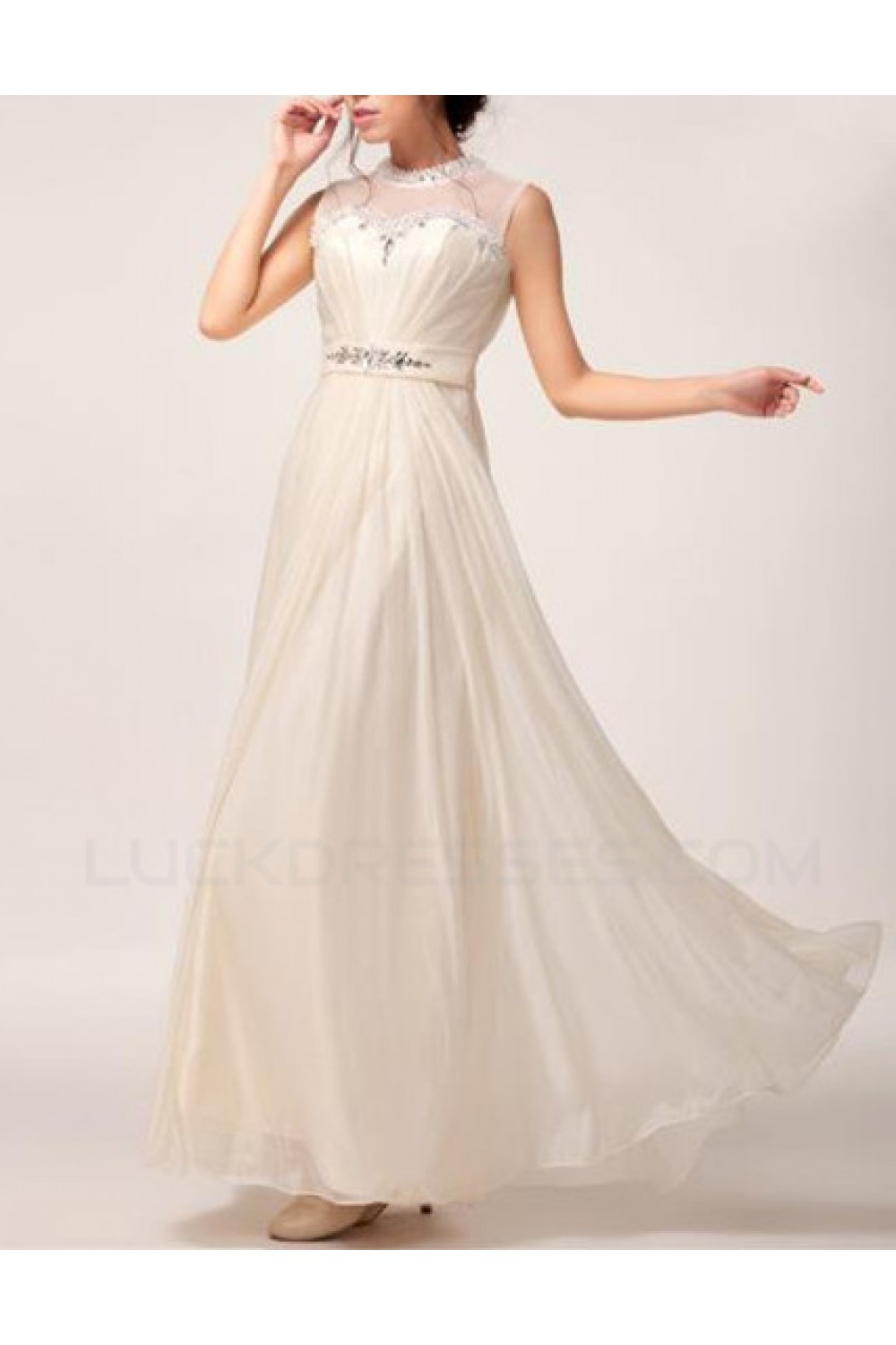 A-Line Beaded Jewel Long Chiffon Prom Evening Formal Party Dresses ED010614