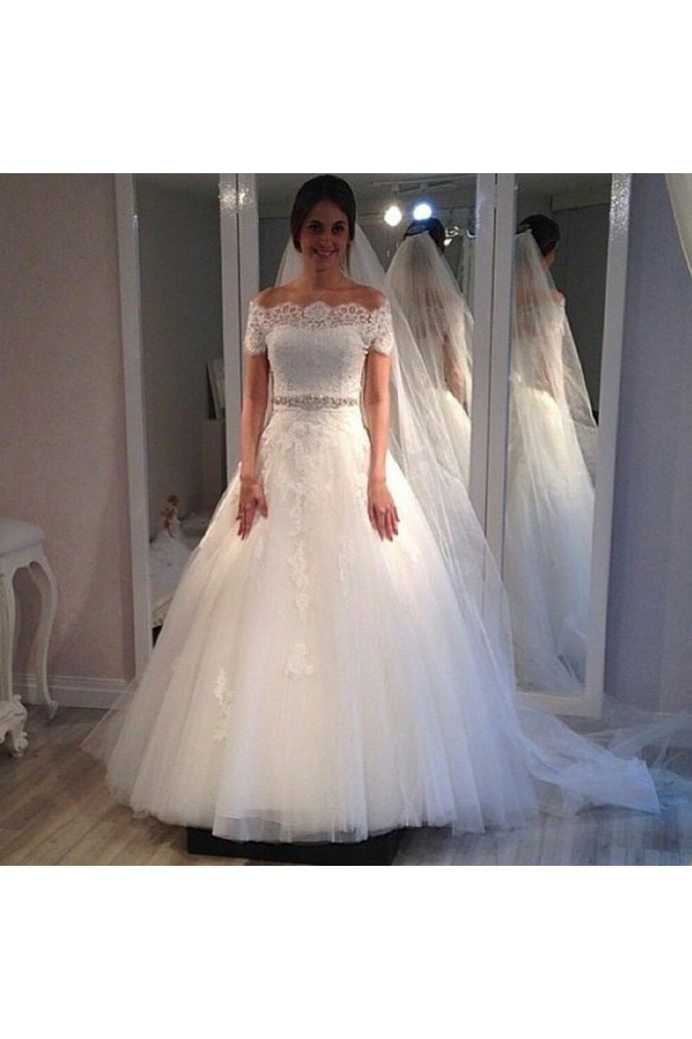 A-Line Beaded Lace Off the Shoulder Wedding Dresses Bridal Gowns 903212
