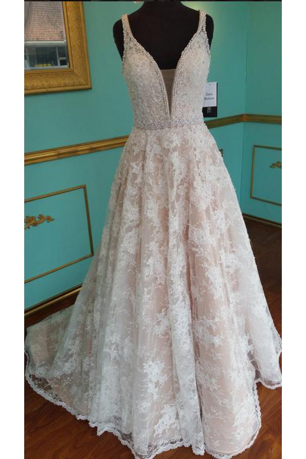 A-Line Beaded Lace Wedding Dresses Bridal Gowns 903043