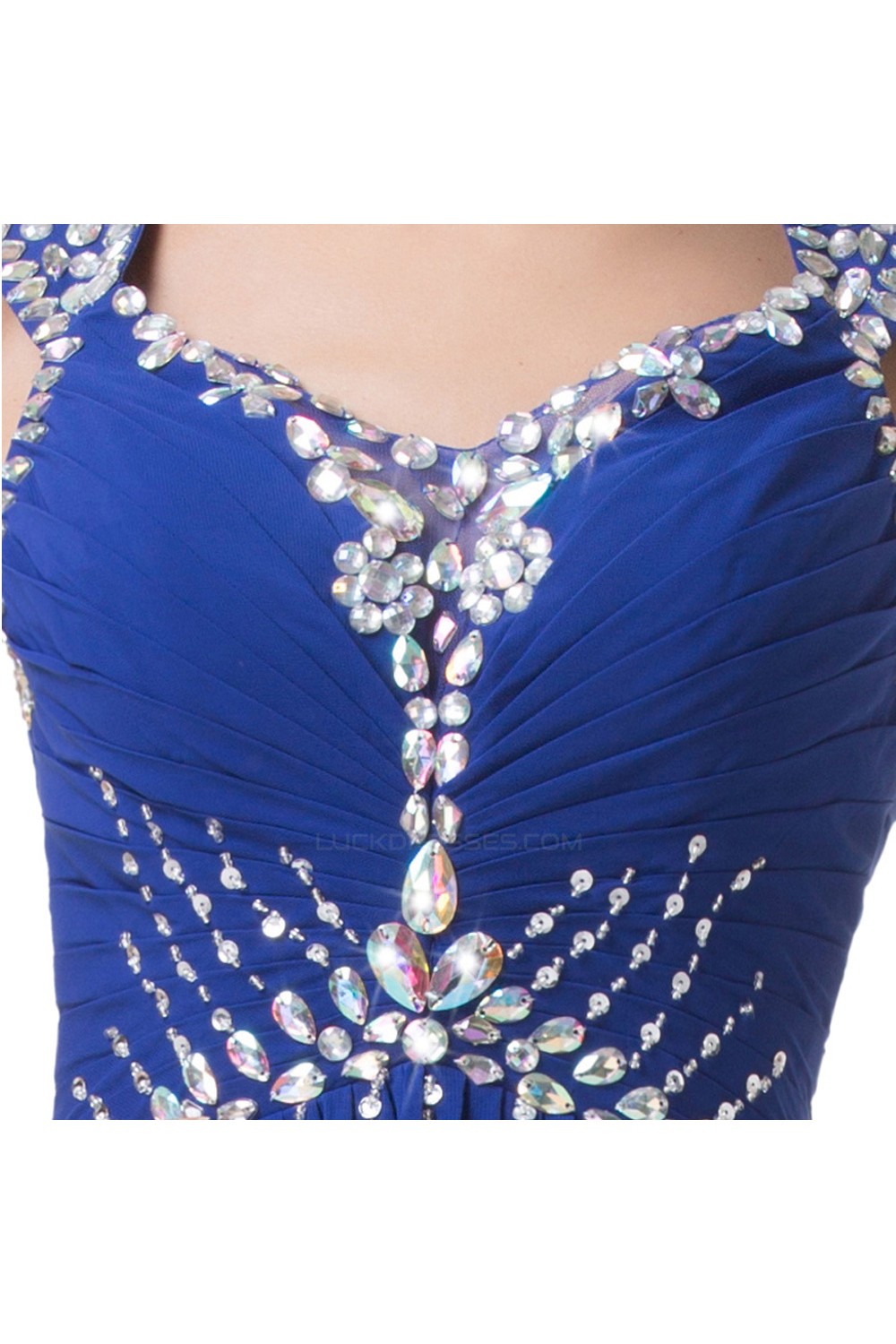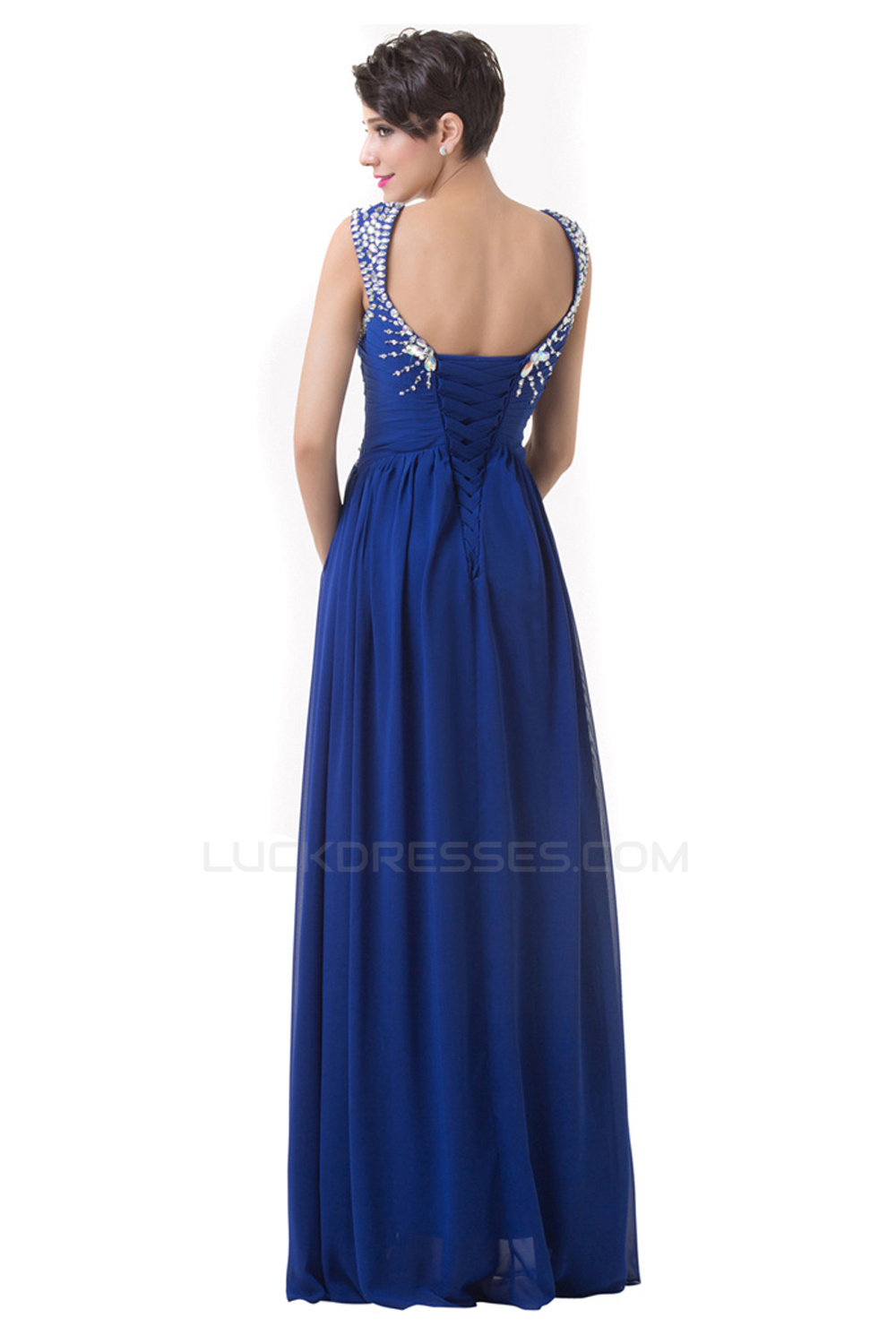 A-Line Beaded Long Blue Chiffon Prom Evening Formal Dresses ED011624
