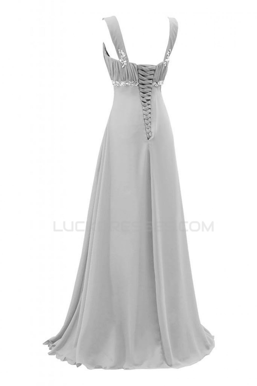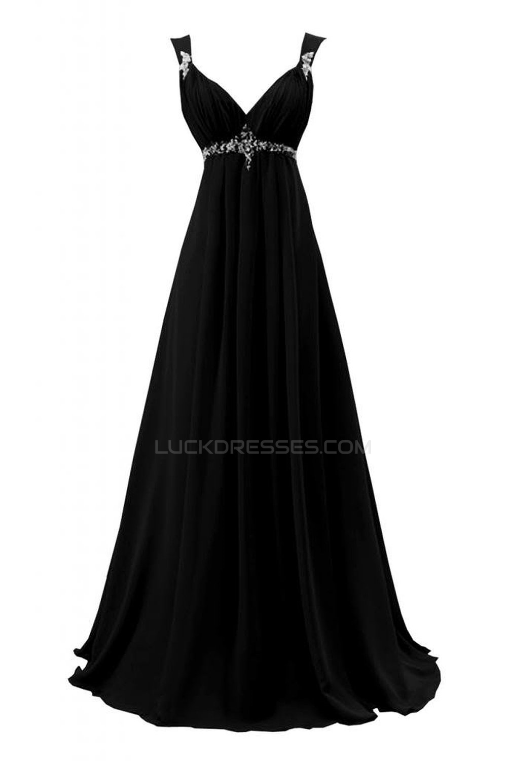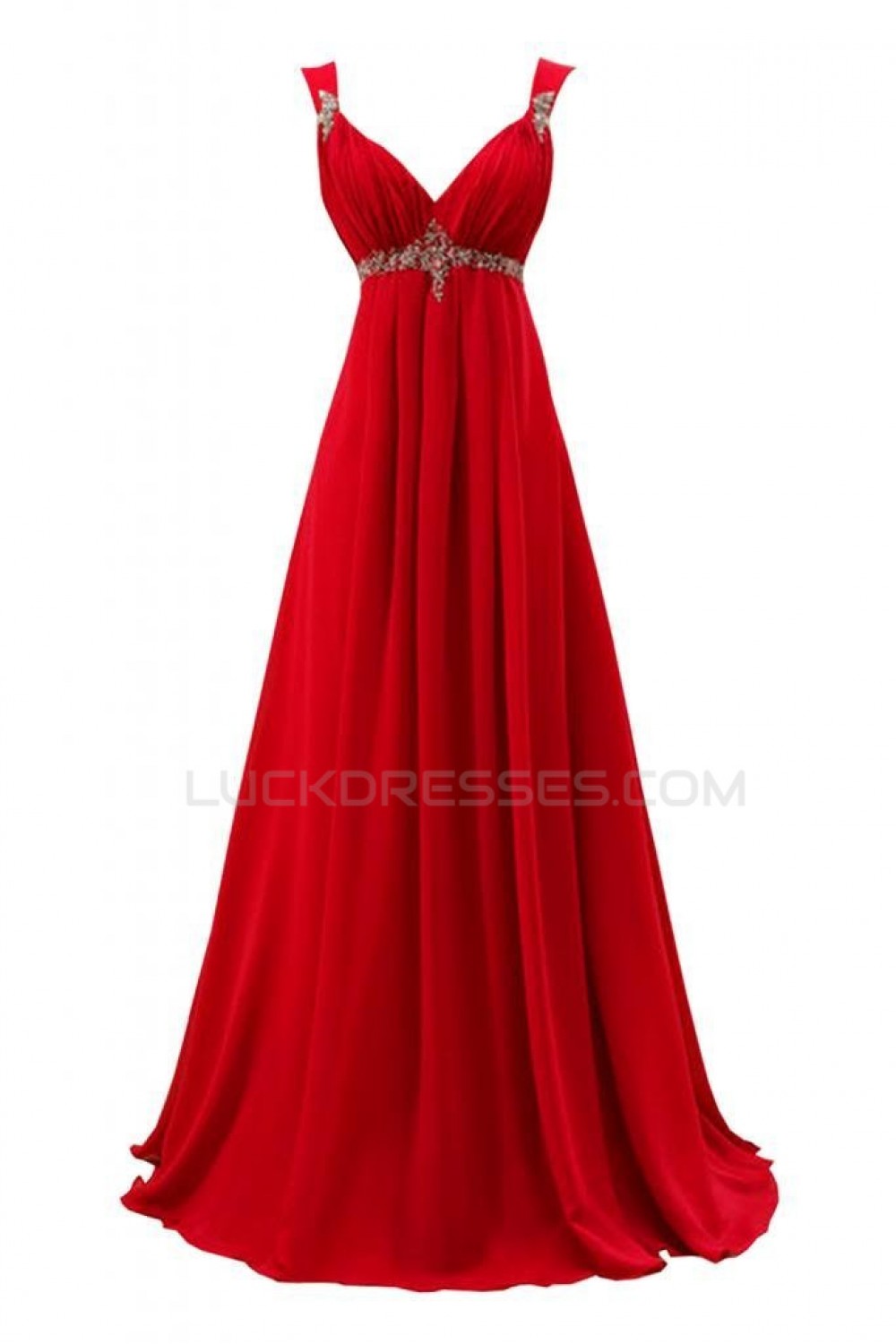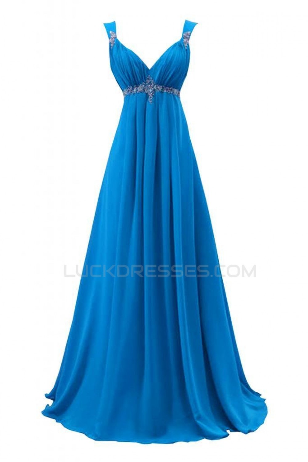 A-Line Beaded Long Blue Chiffon Prom Evening Formal Party Dresses ED010219
