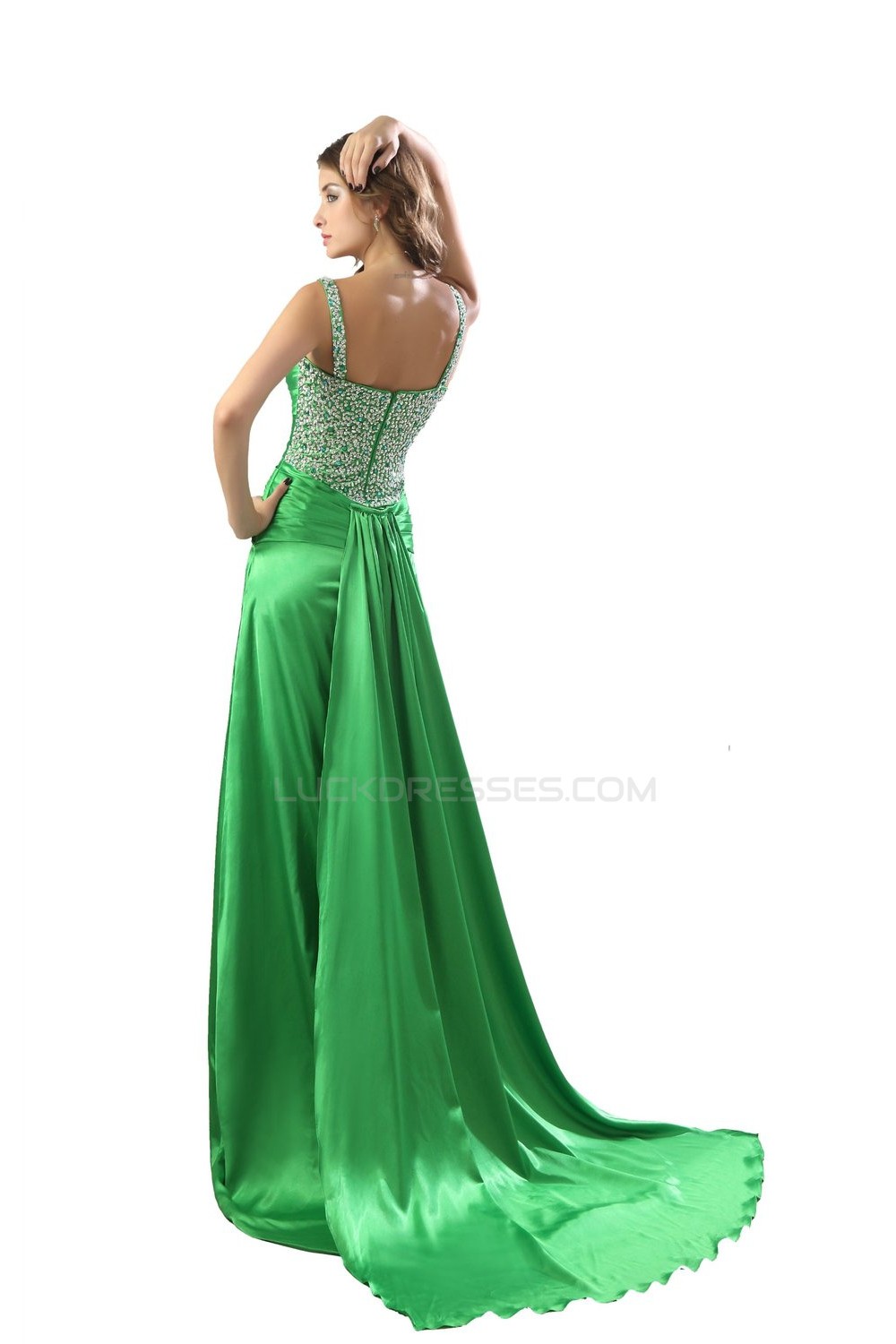 A-Line Beaded Long Green Prom Evening Formal Party Dresses ED010471