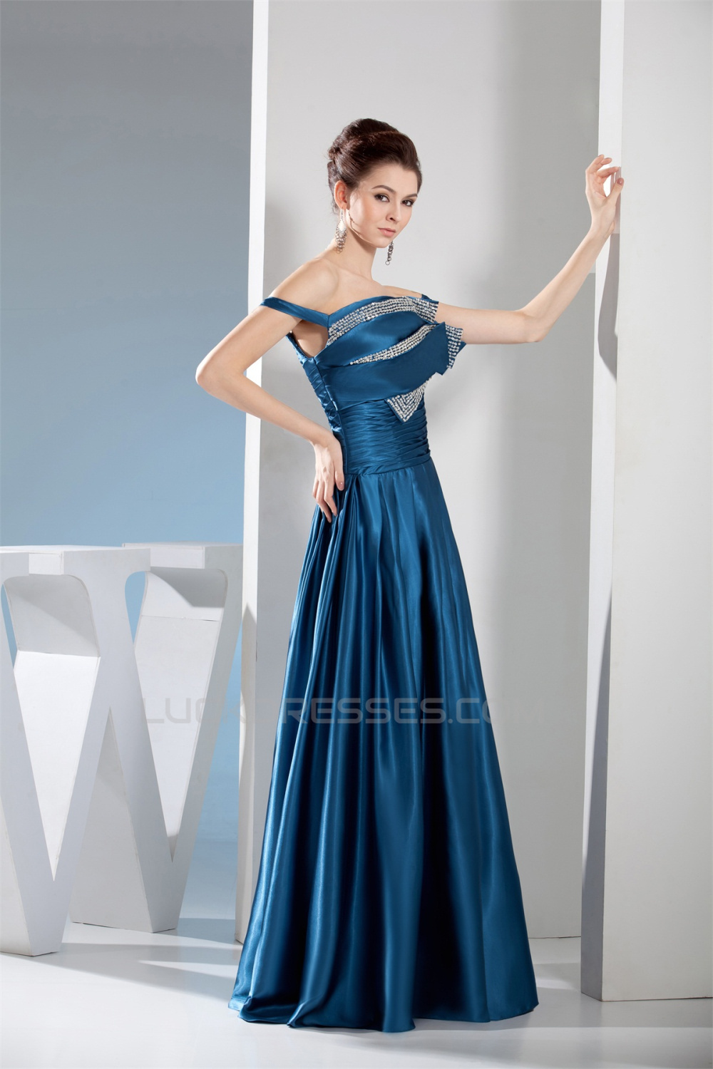 A-Line Beaded Long Mother of the Bride Dresses 2040057