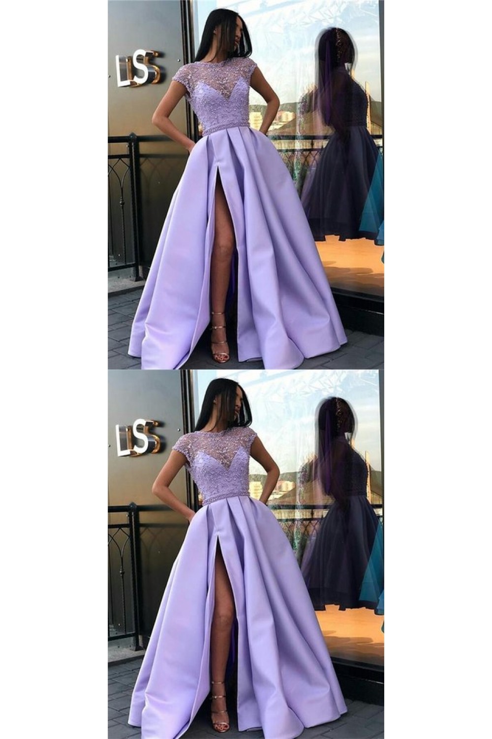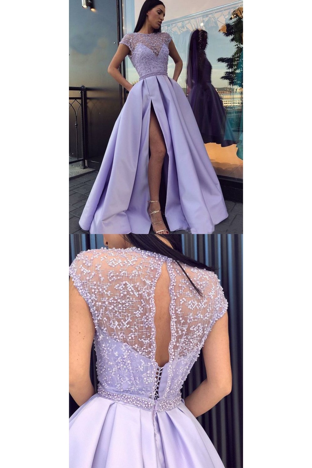 A-Line Beaded Long Prom Dresses Formal Evening Dresses 601254