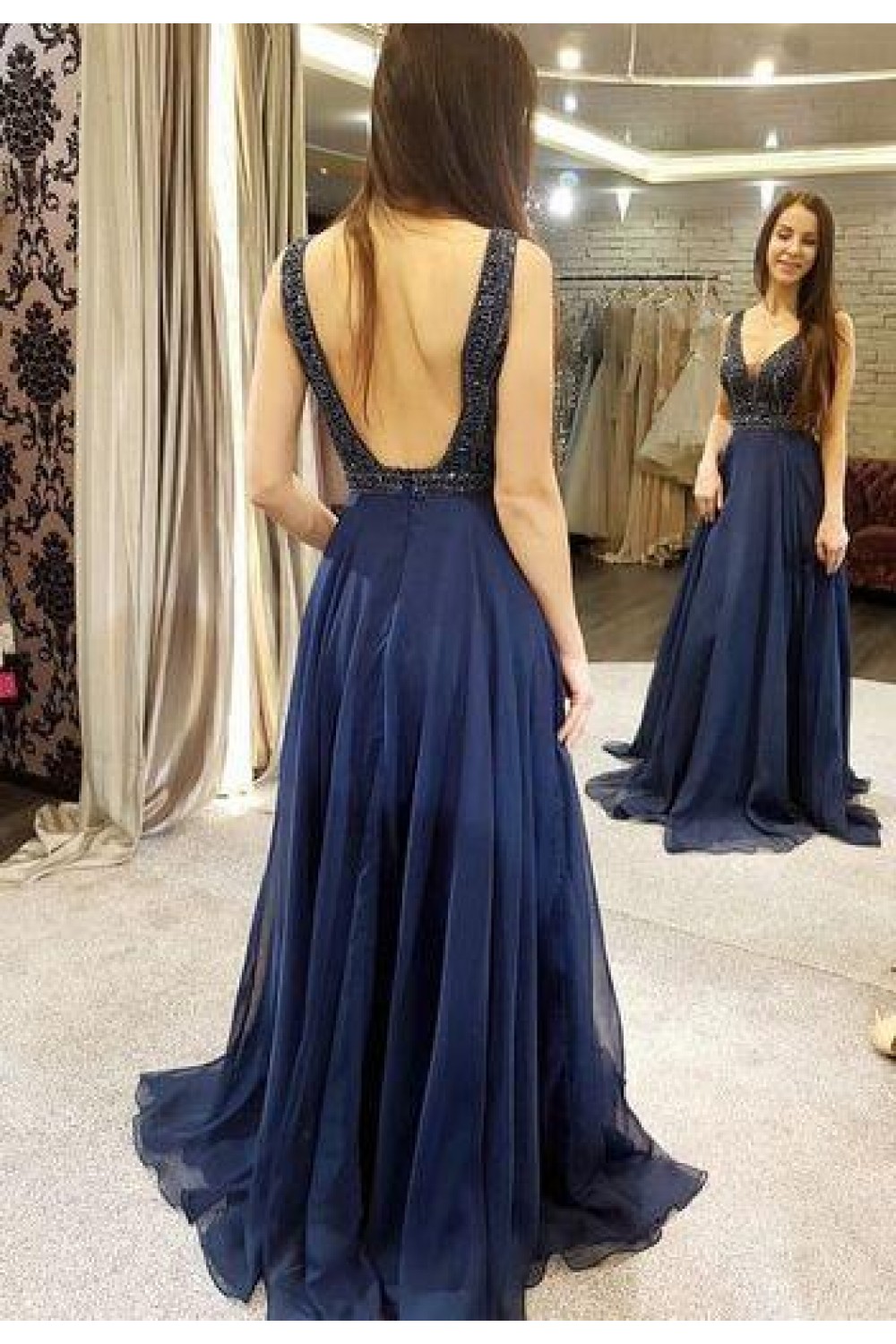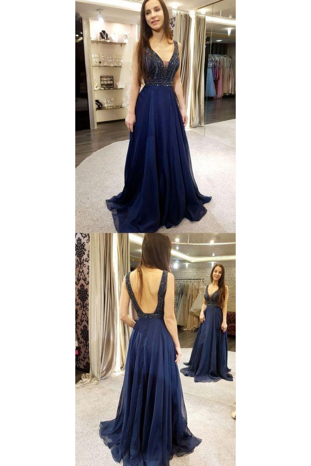 A-Line Beaded Long Prom Dresses Formal Evening Dresses 601306