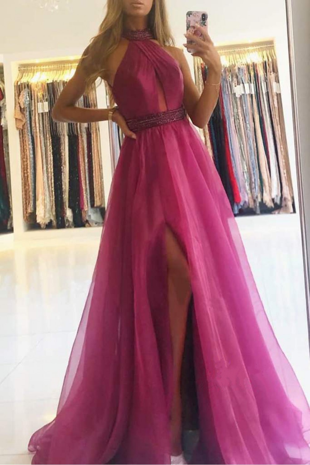 A-Line Beaded Long Prom Dresses Formal Evening Gowns 901613