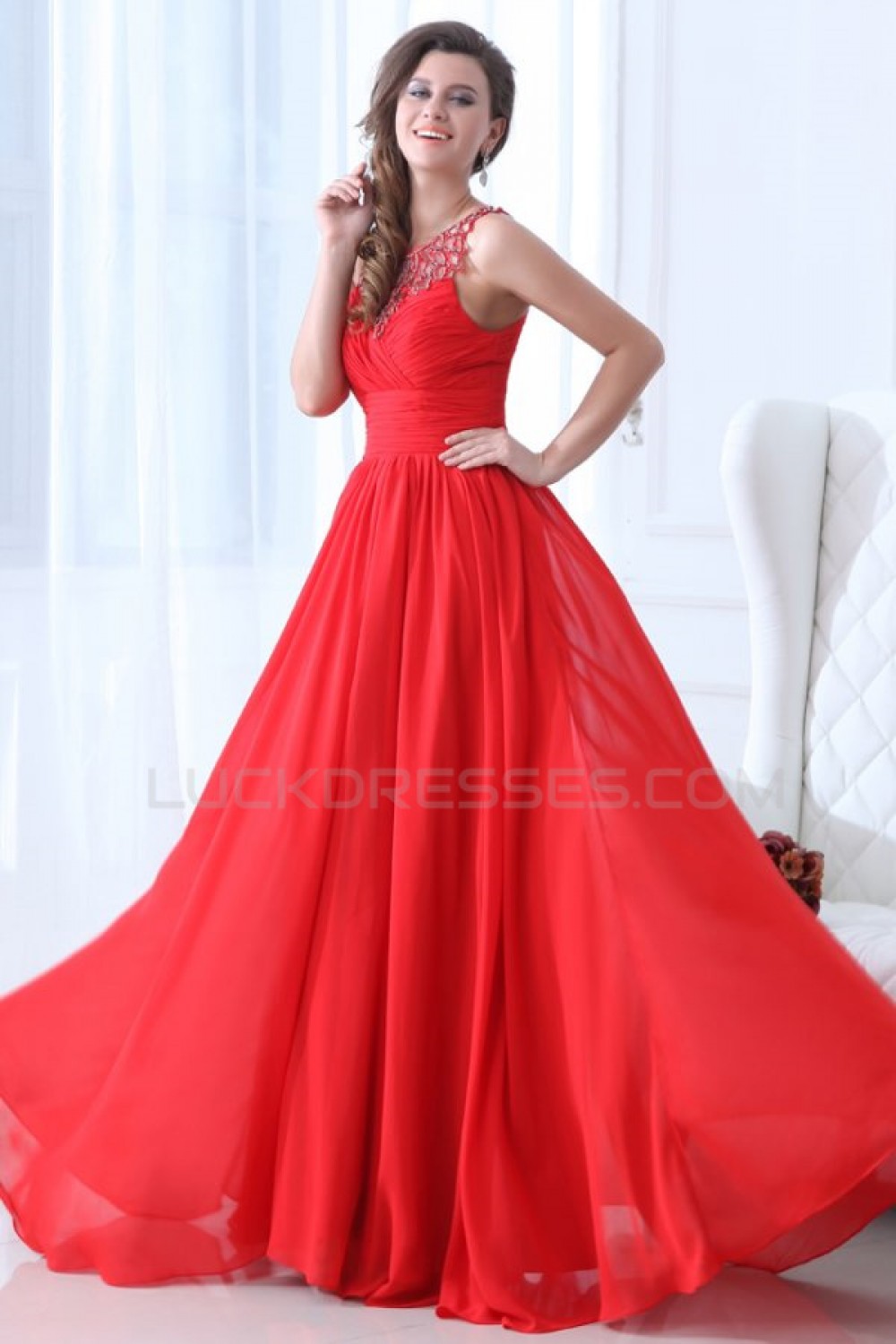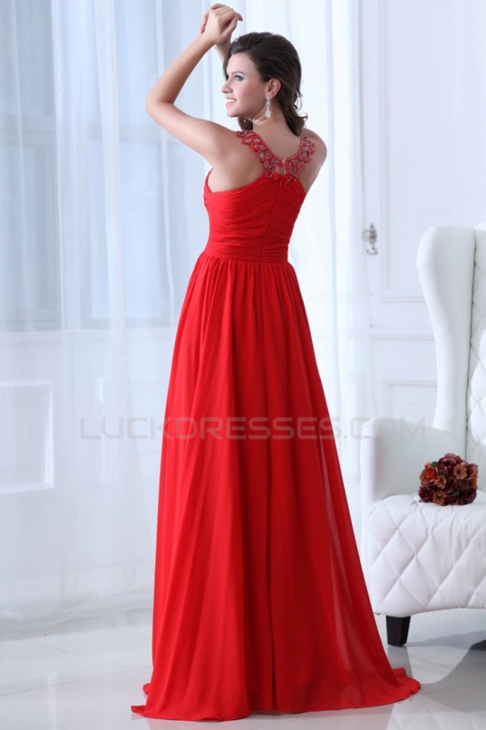 A-Line Beaded Long Red Chiffon Prom Evening Formal Party Dresses ED010059