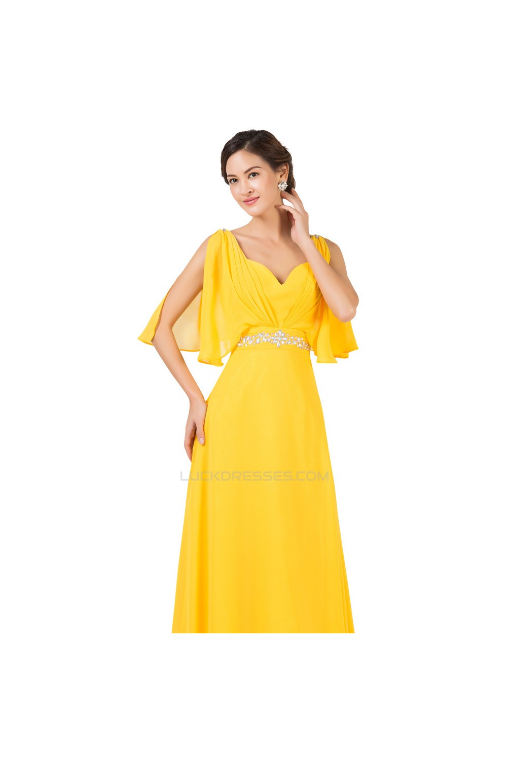A-Line Beaded Long Yellow Chiffon Prom Evening Formal Dresses ED011655