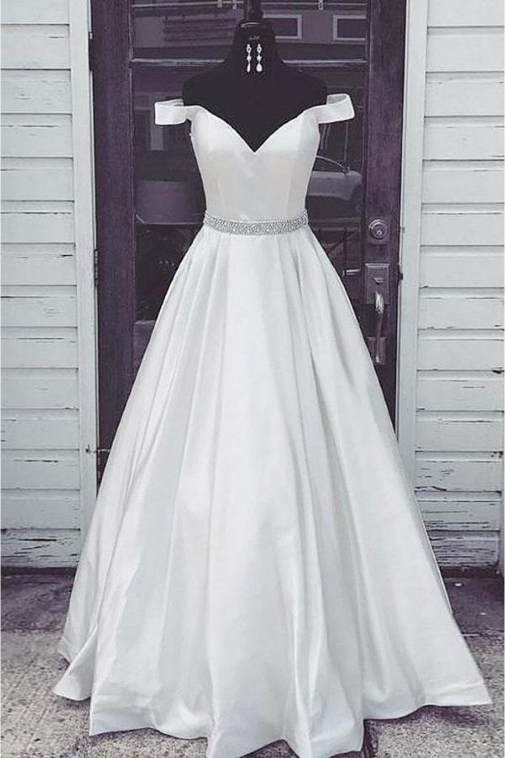 A-Line Beaded Off-the-Shoulder Long Prom Dresses Formal Evening Gowns 6011647