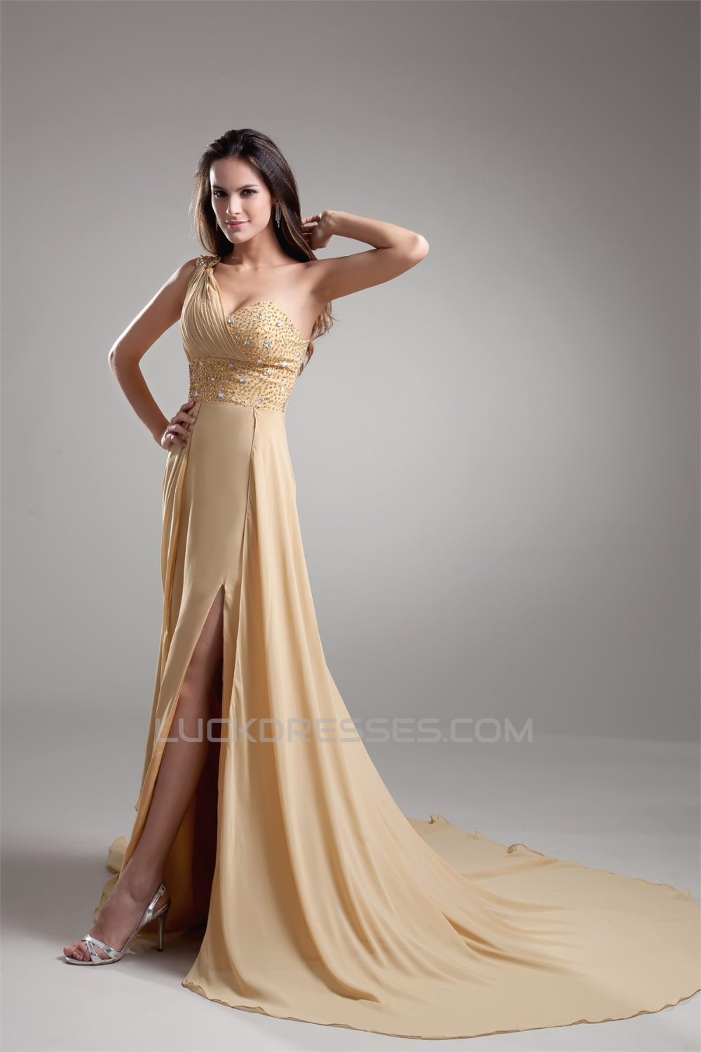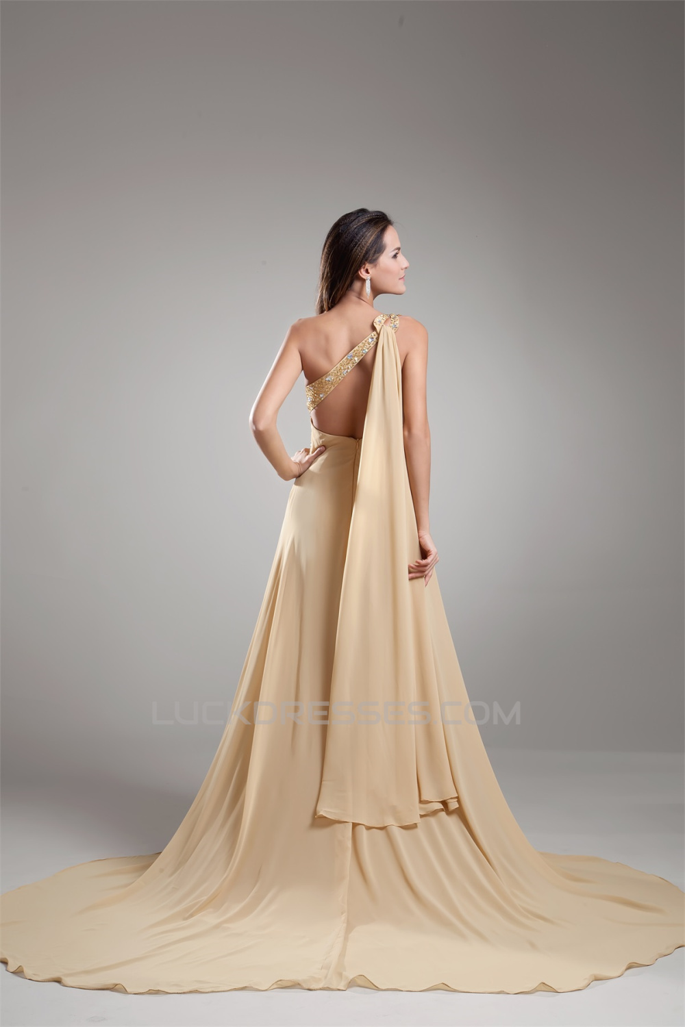A-Line Beaded One-Shoulder Court Train Prom/Formal Evening Dresses 02020697
