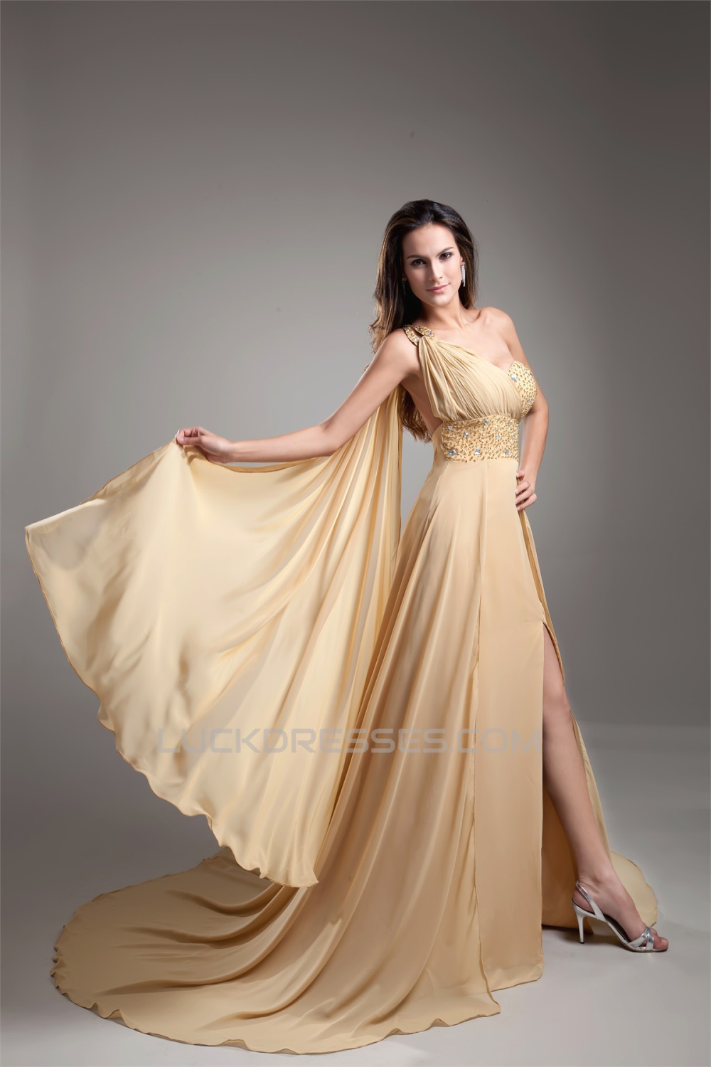 -60% A-Line Beaded One-Shoulder Court Train Prom/Formal Evening Dresses 02020697