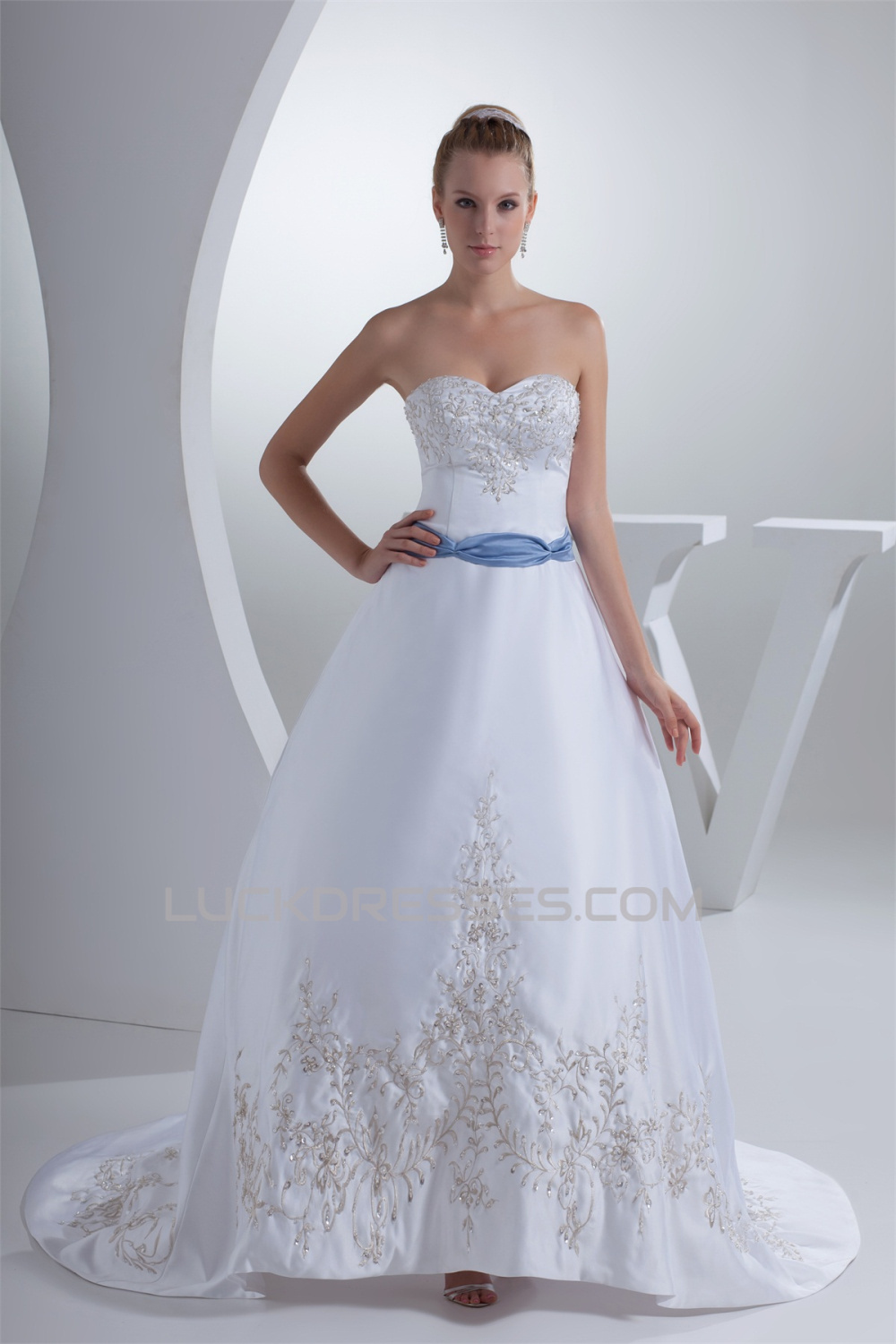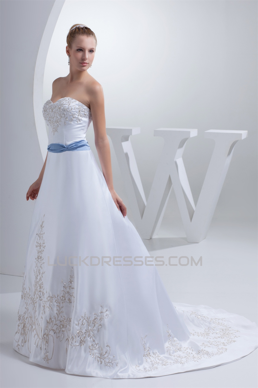 A-Line Beaded Satin Sweetheart Sleeveless Wedding Dresses 2030306