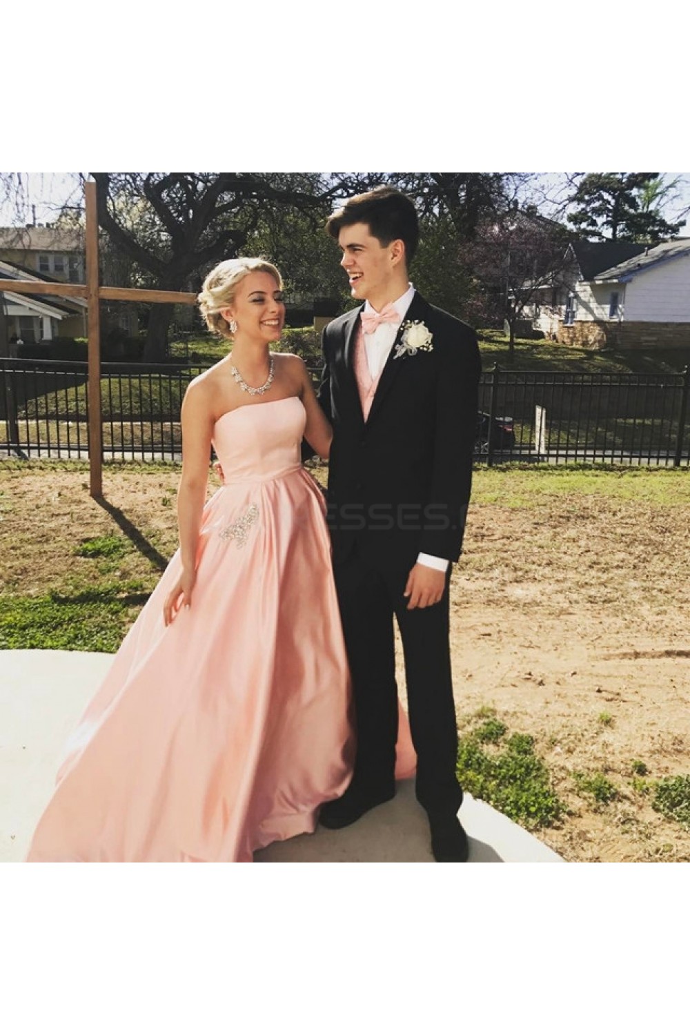 A-Line Beaded Strapless Prom Formal Evening Party Dresses 3021309