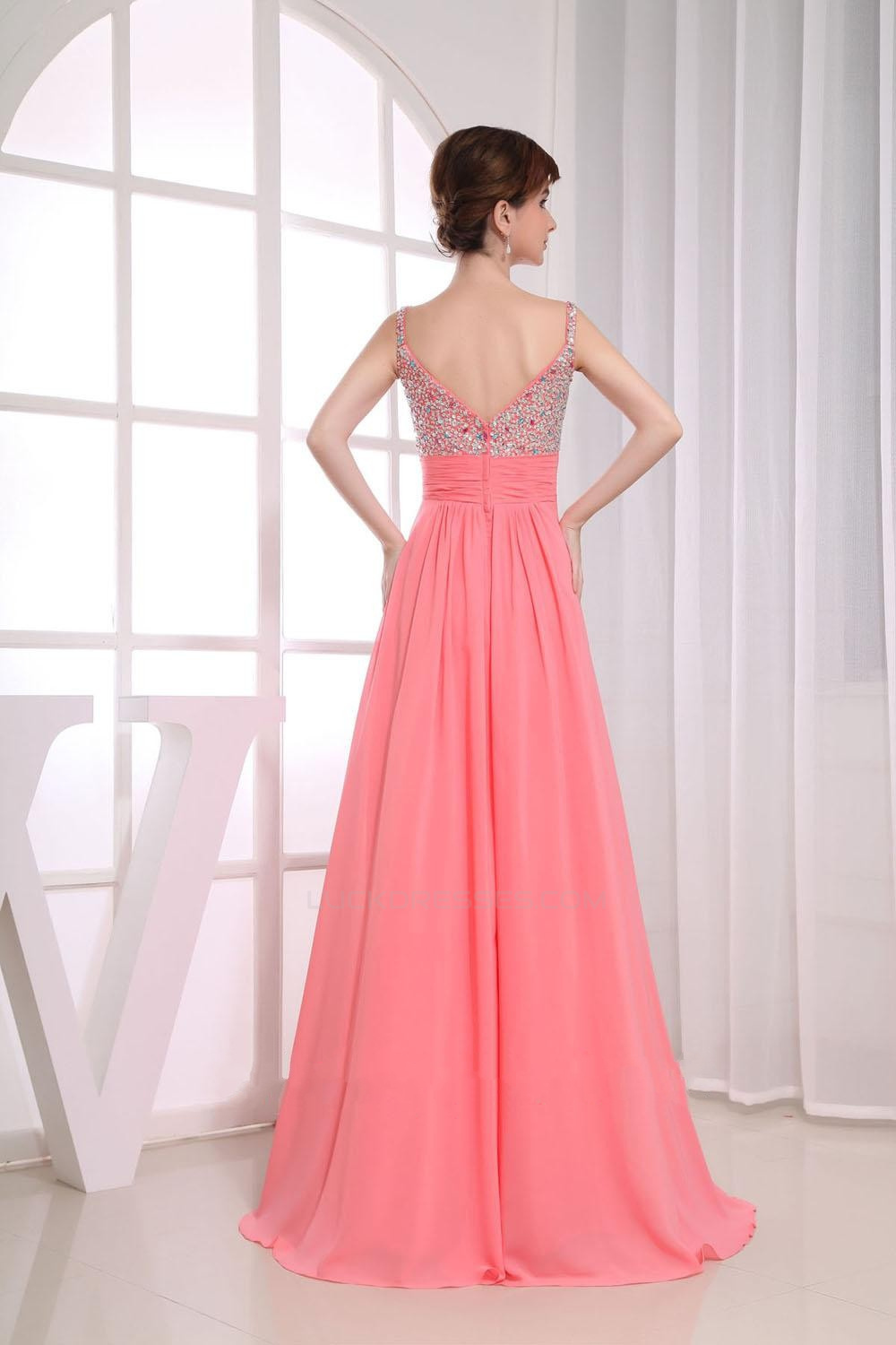A-Line Beaded Straps Long Chiffon Prom Evening Formal Dresses ED010855