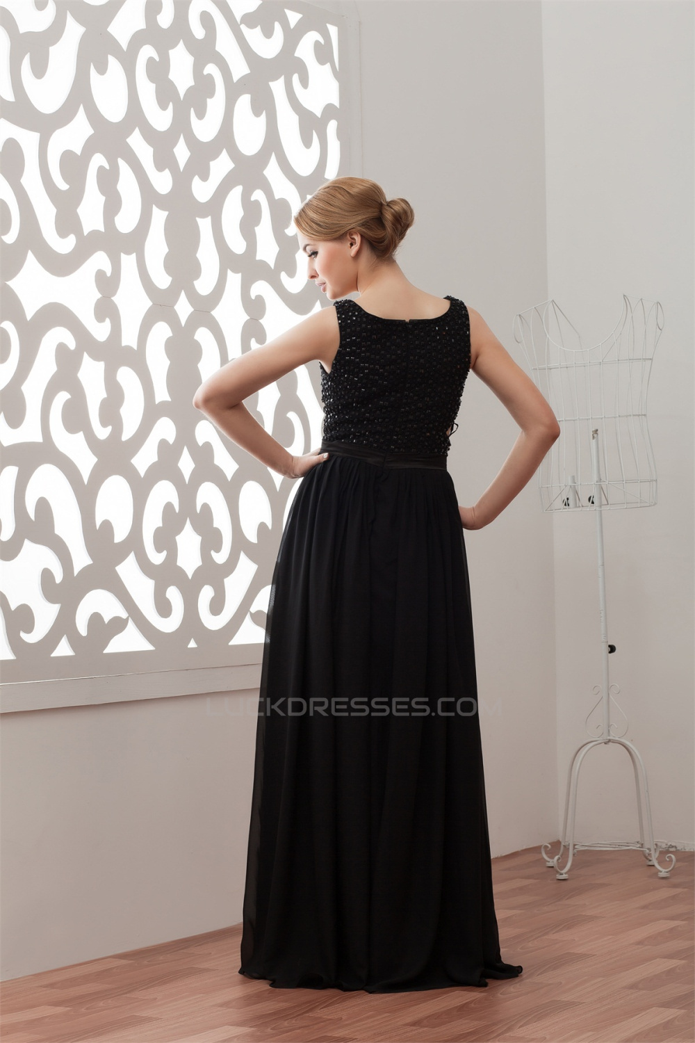 A-Line Beading Floor-Length Square Long Black Chiffon Prom/Formal Evening Dresses 02020456