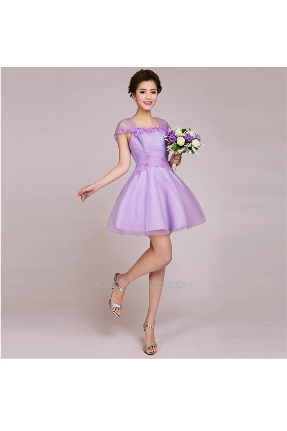 A-Line Cap-Sleeve Short Tulle Prom Evening Formal Bridesmaid Dresses ED011234