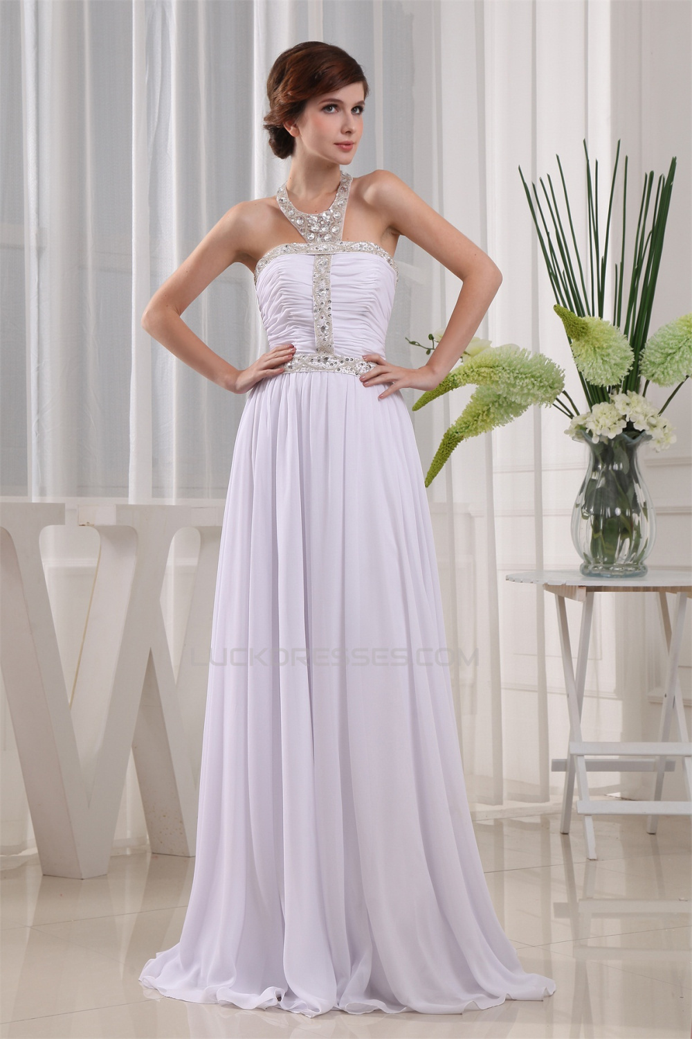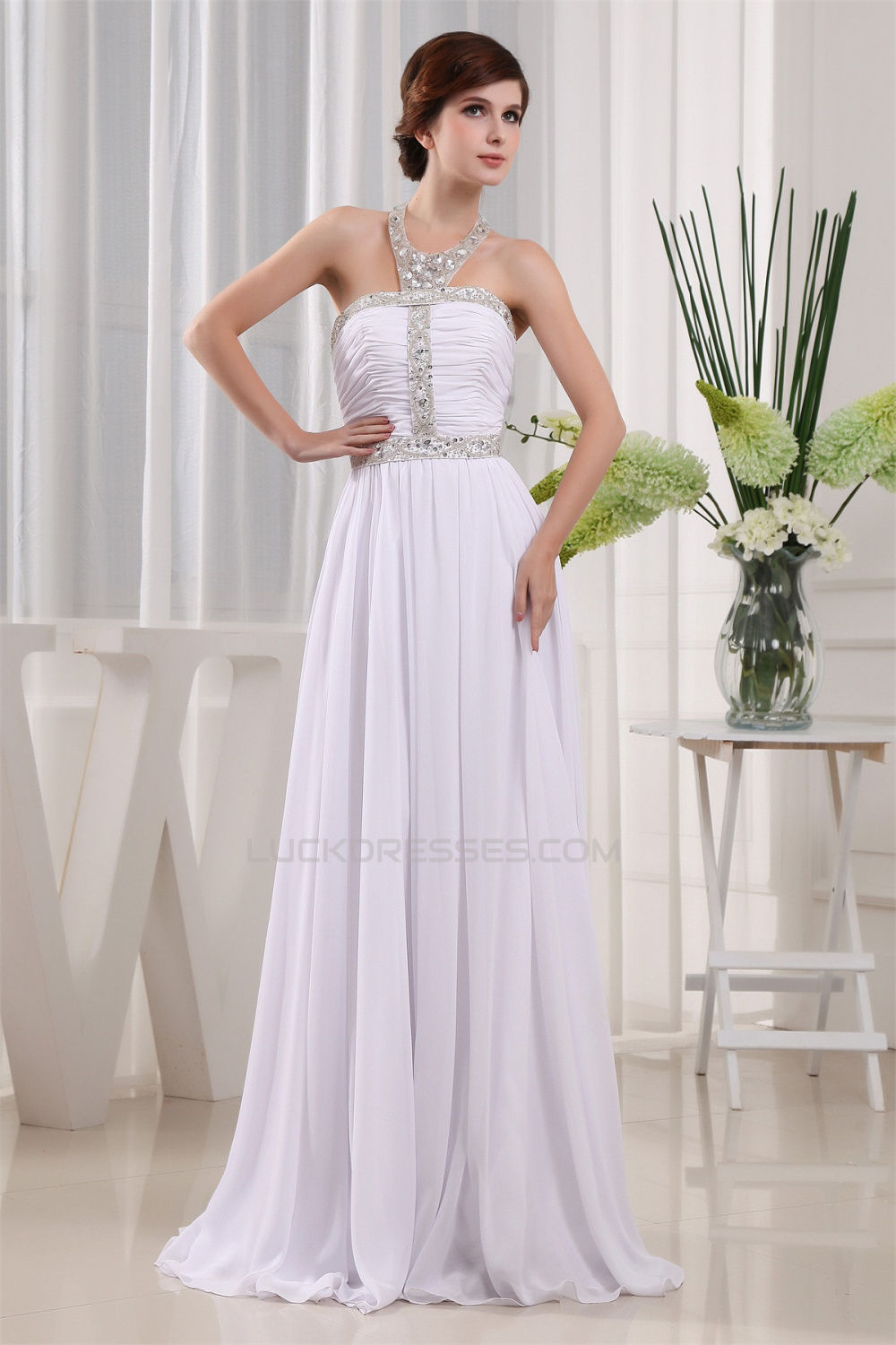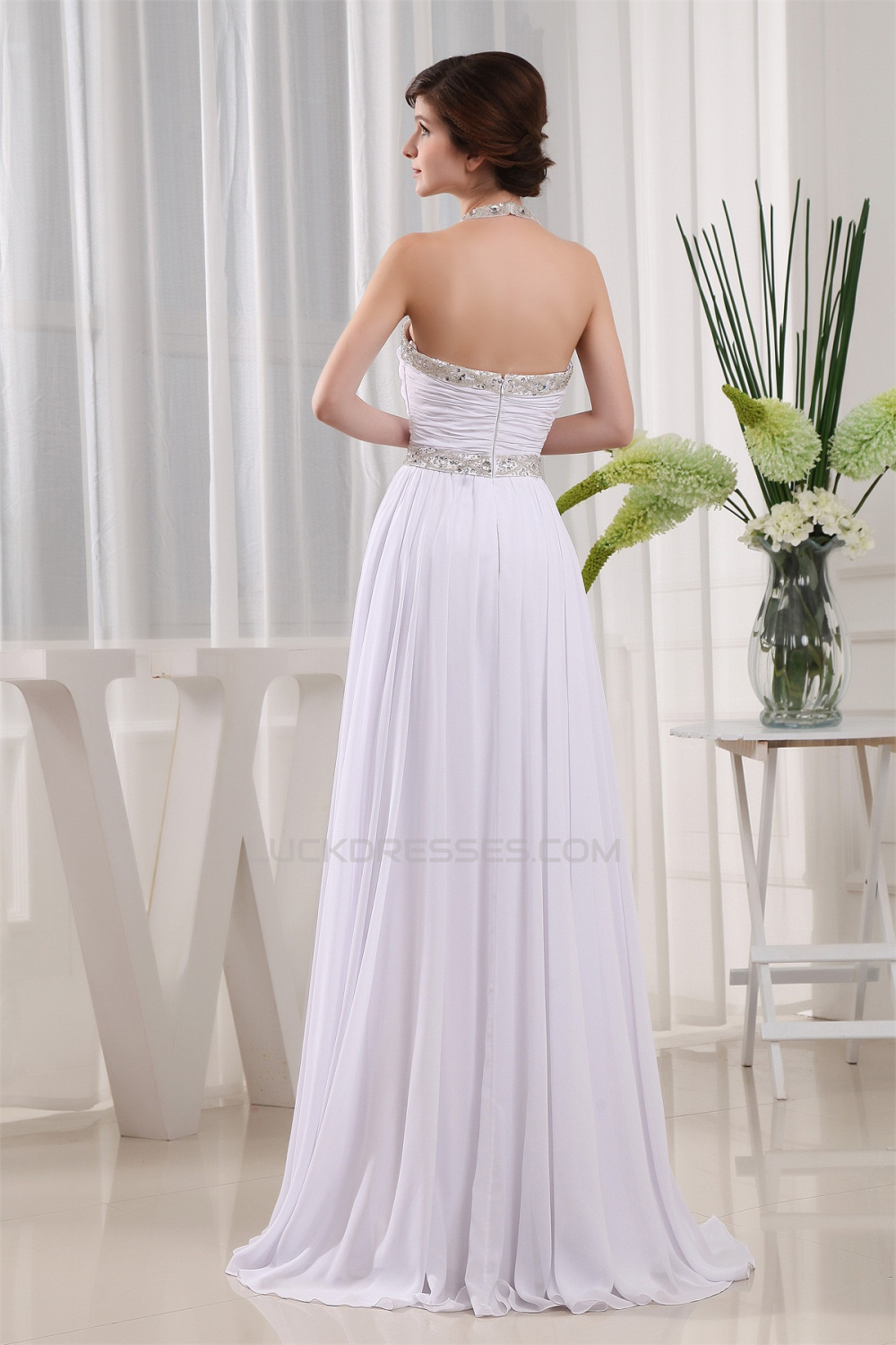 A-Line Chiffon Halter Sleeveless Long White Prom/Formal Evening Dresses 02020010