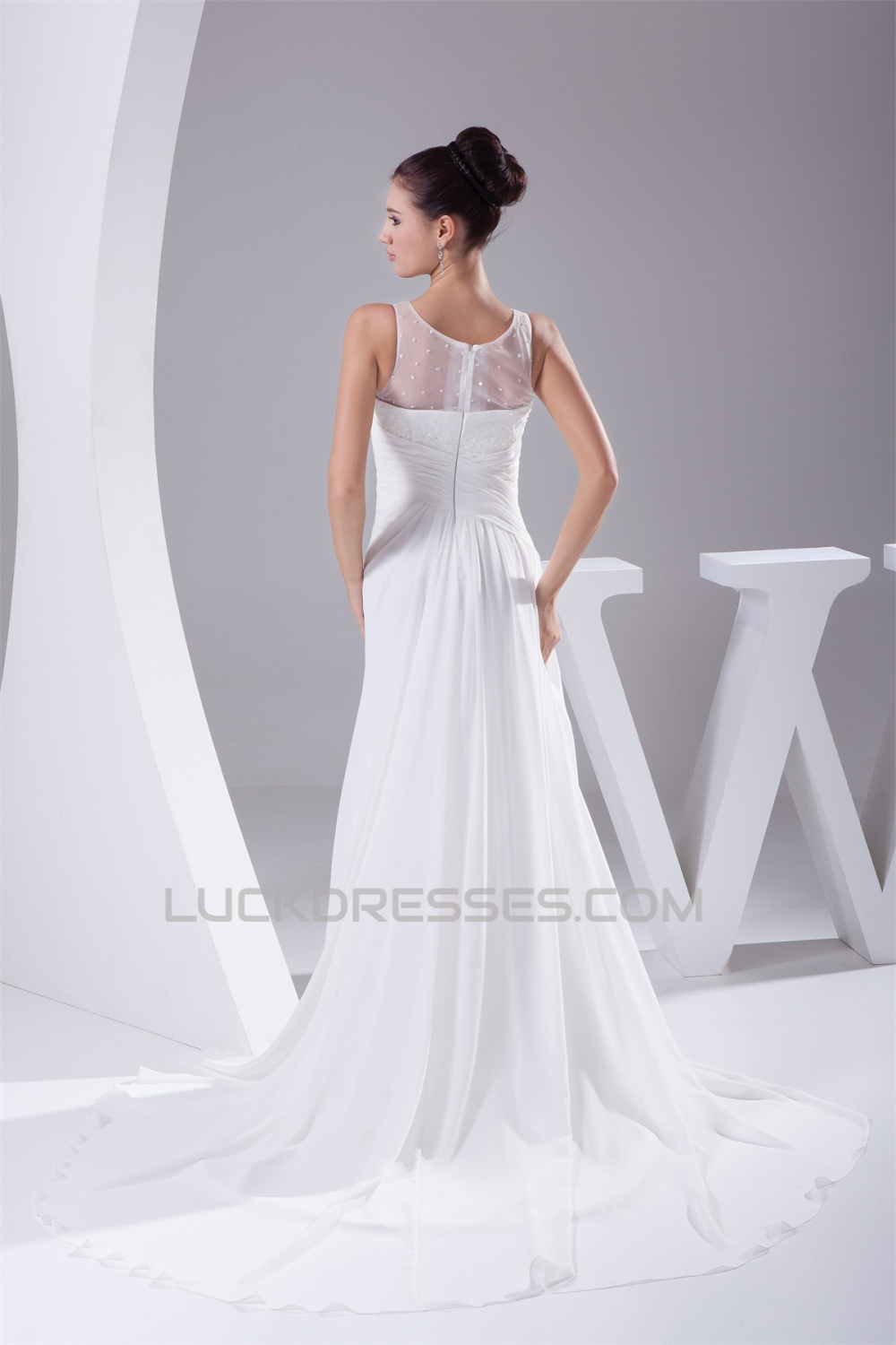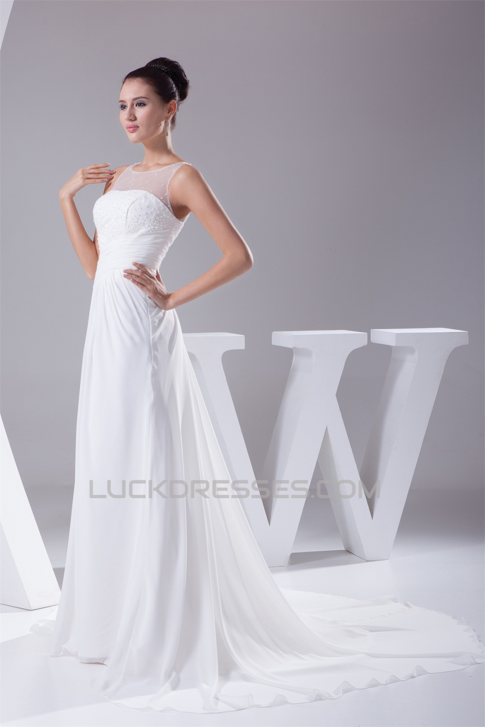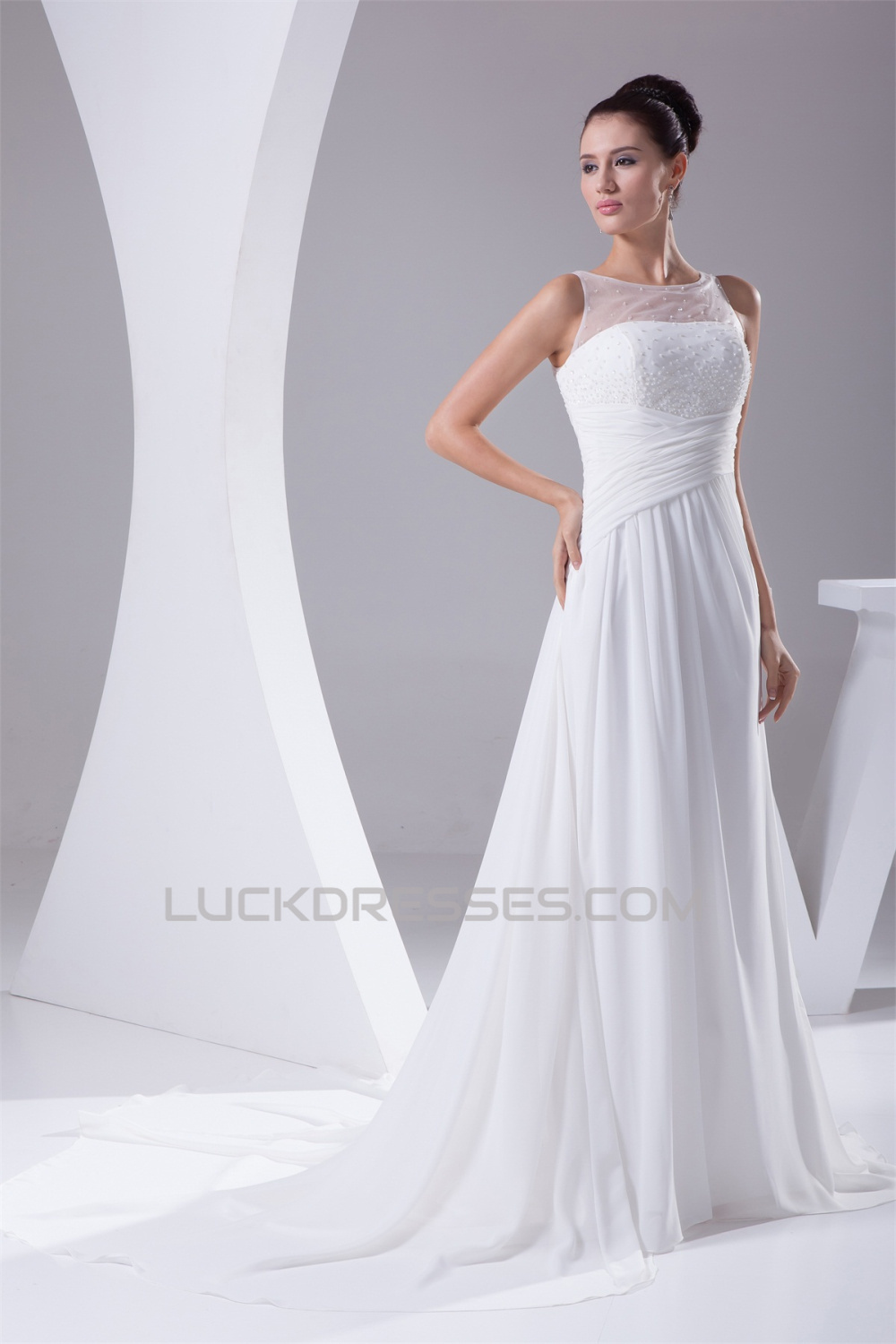 -50% A-Line Chiffon Sweep Train Beaded Wedding Dresses 2030102
