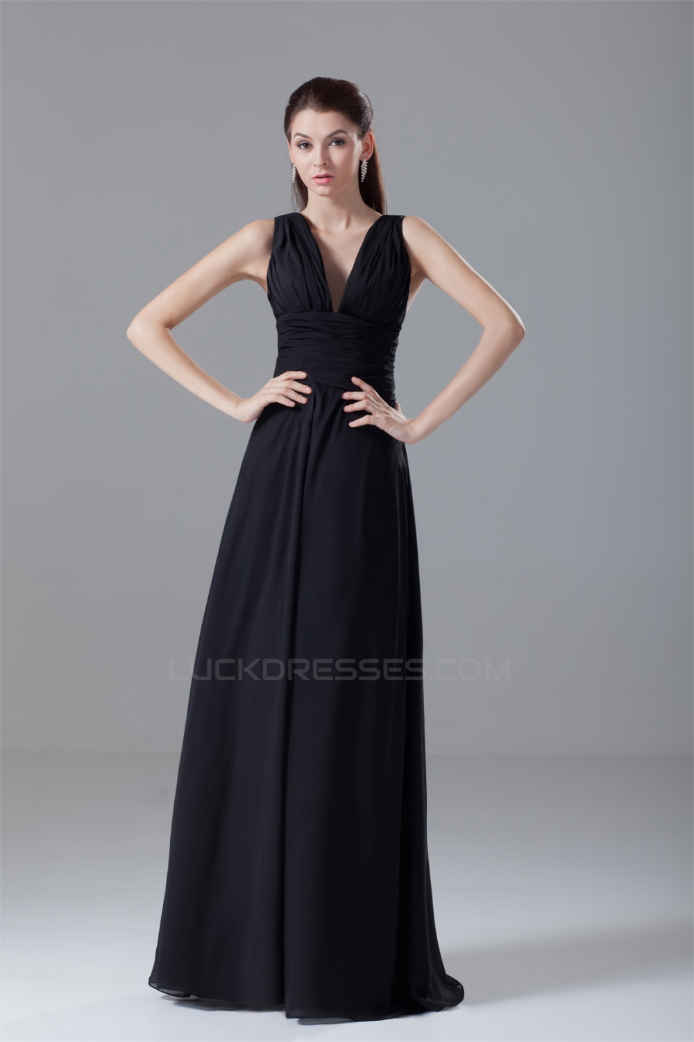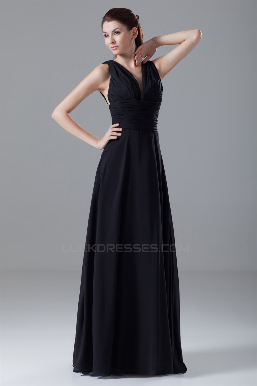 A-Line Chiffon V-Neck Long Black Bridesmaid/Wedding Party Dresses 02010121