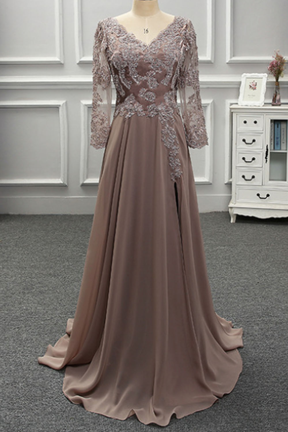 A-Line Chiffon and Lace Long Mother of the Bride Dresses 702214