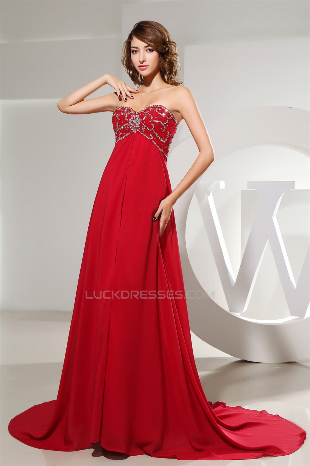 A-Line Empire Beaded Long Red Chiffon Prom/Formal Evening Maternity Dresses 02020159
