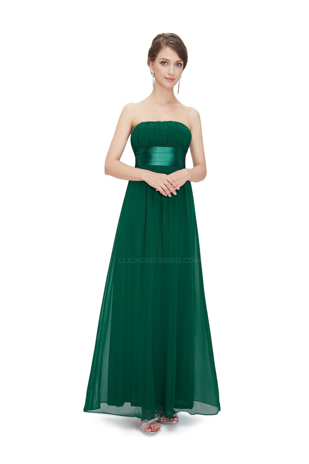 -55% A-Line Empire Strapless Long Green Chiffon Bridesmaid Dresses/Wedding Party Dresses/Maternity Dresses BD010249