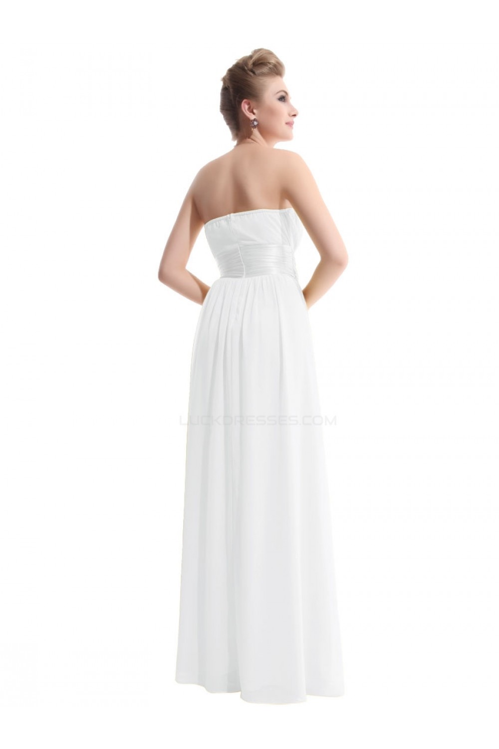A-Line Empire Strapless Long White Chiffon Bridesmaid Dresses/Wedding Party Dresses/Maternity Dresses BD010255