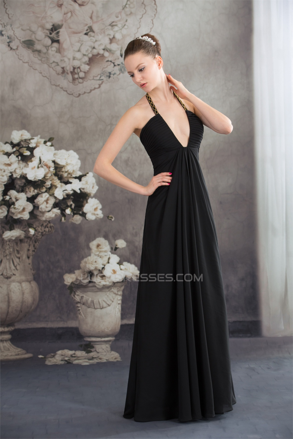 A-Line Floor-Length Halter Beading Chiffon Long Black Prom/Formal Evening Dresses 02020017