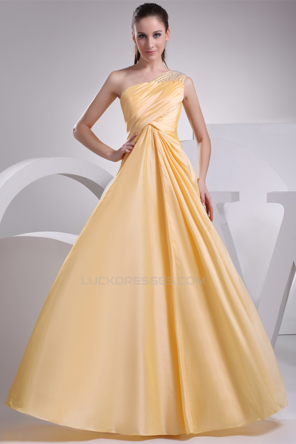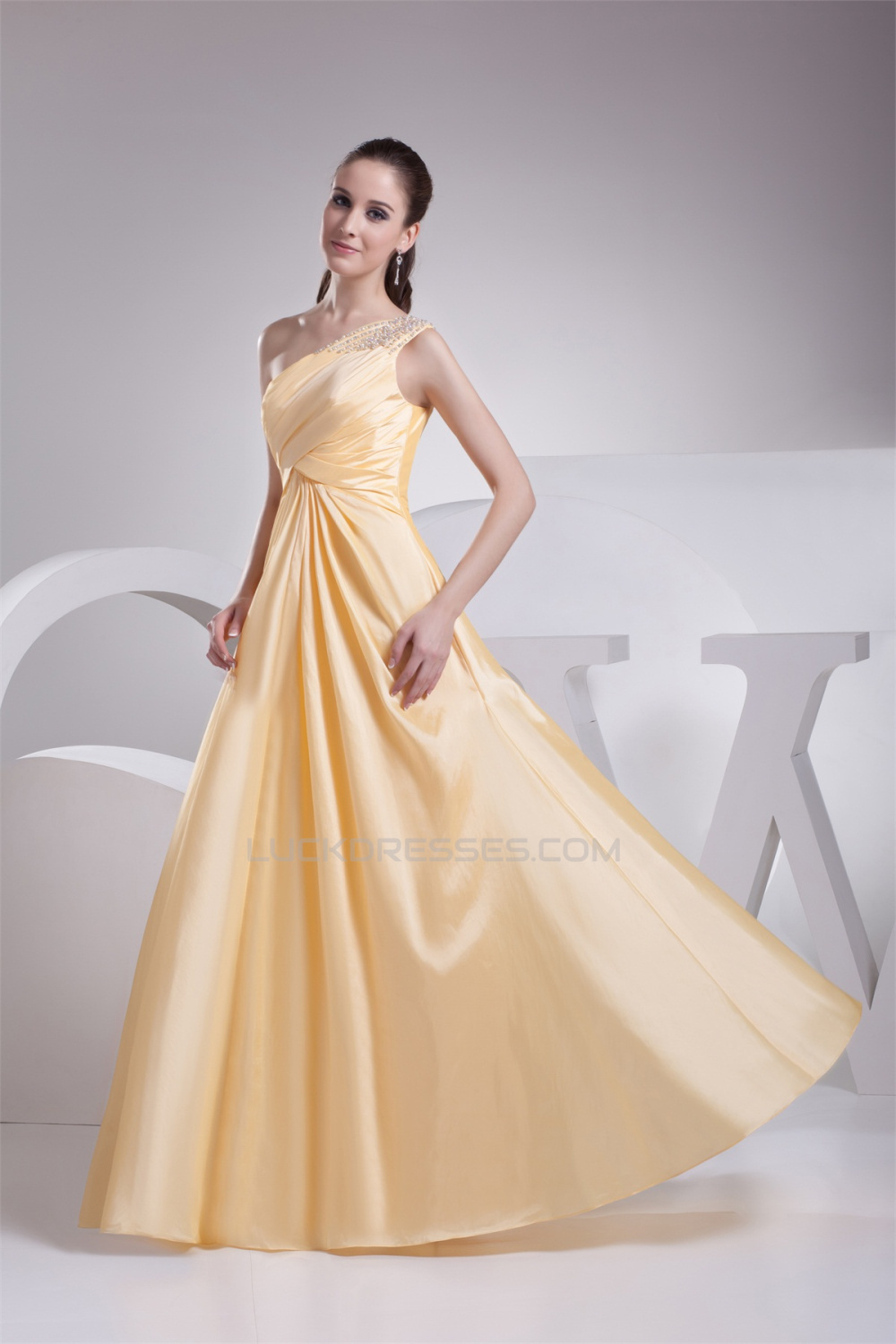 A-Line Floor-Length One-Shoulder Beading Long Prom/Formal Evening Dresses 02020065