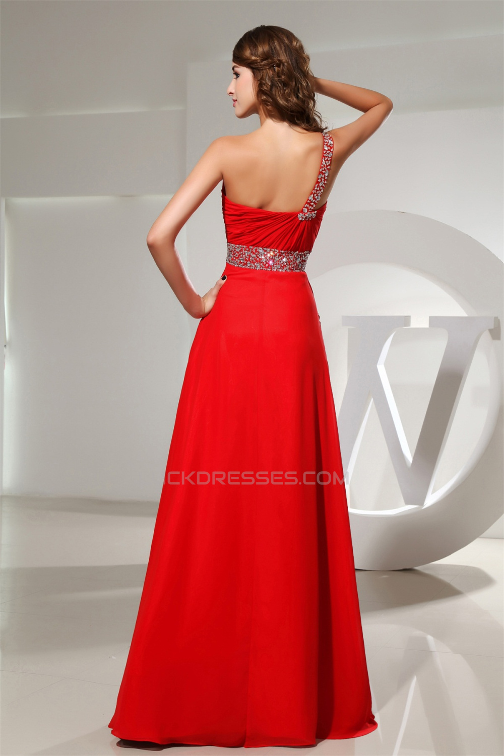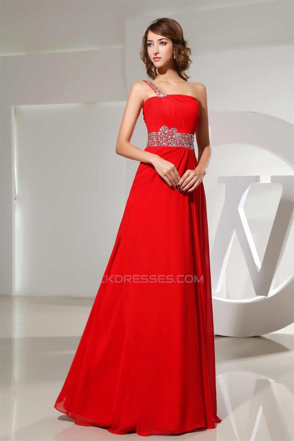 A-Line Floor-Length One-Shoulder Beading Long Red Chiffon Prom/Formal Evening Dresses 02020188