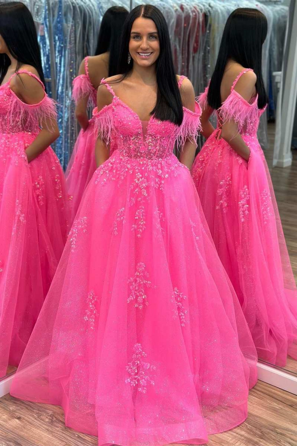 A-Line Fuchsia Lace and Tulle Long Prom Dresses 801028