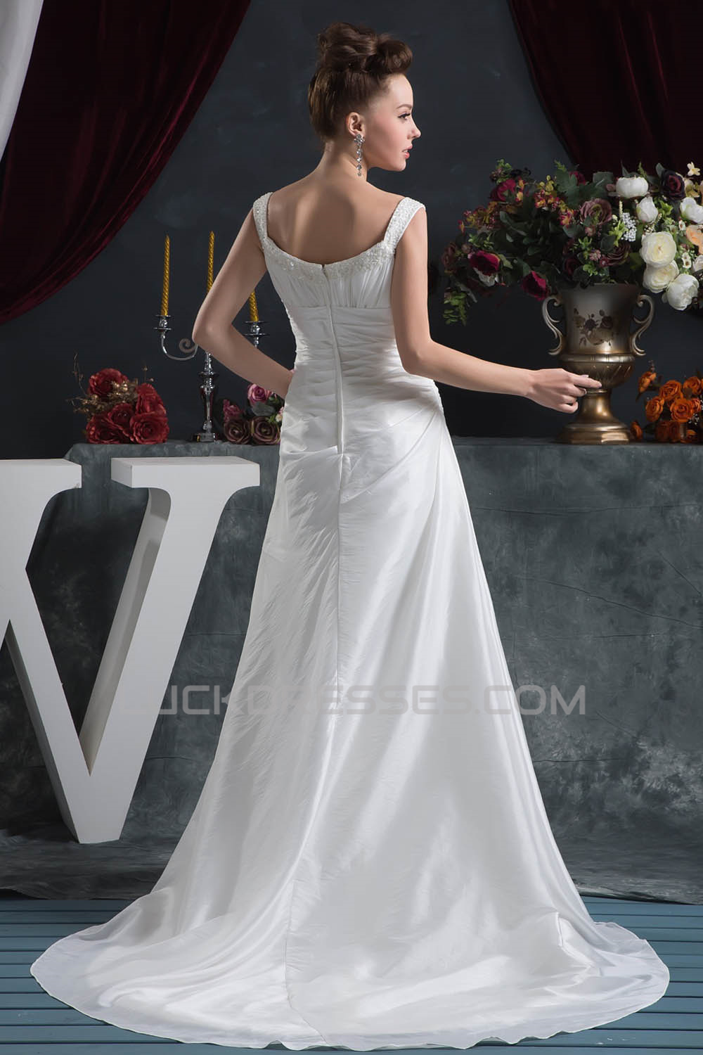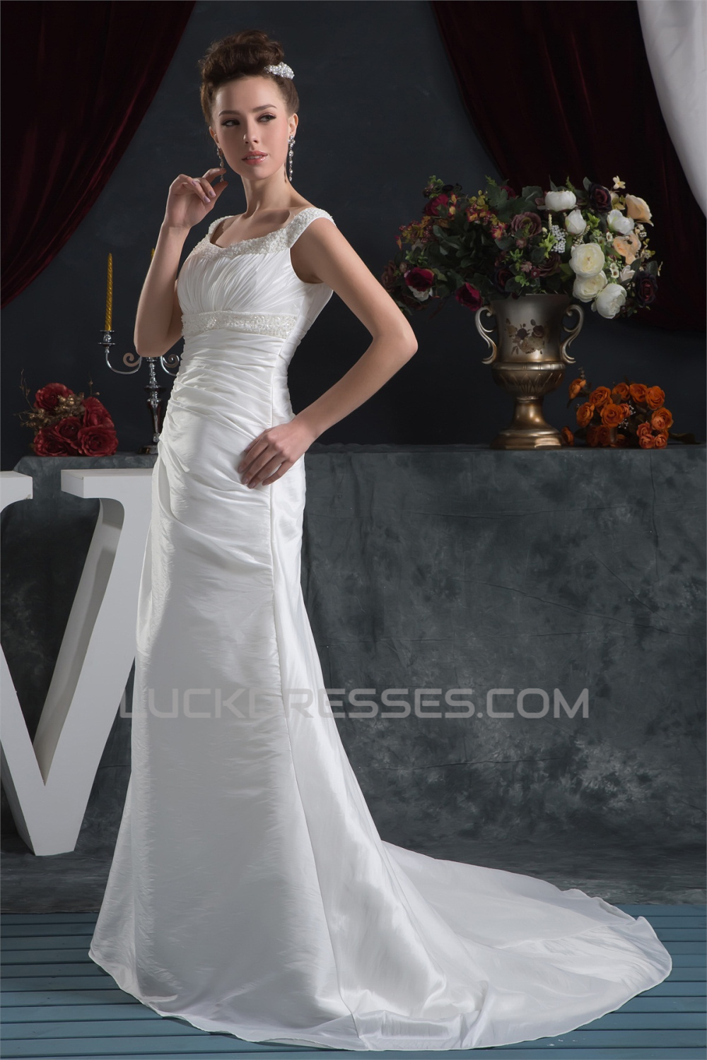 A-Line Great Sleeveless Taffeta Scoop Beaded Wedding Dresses 2030731