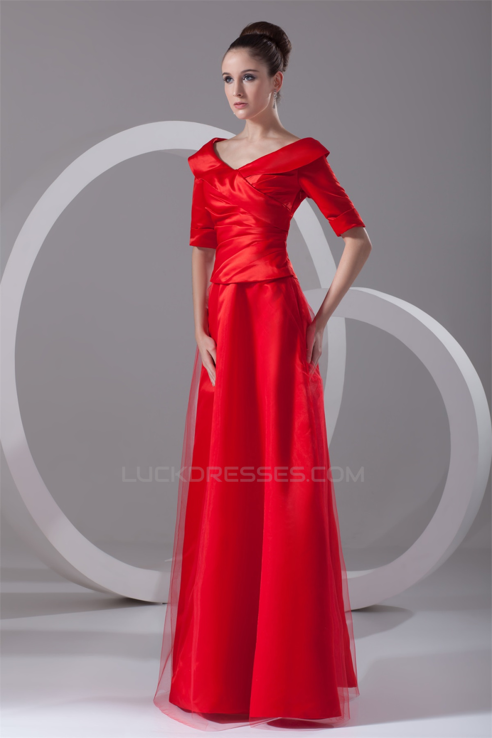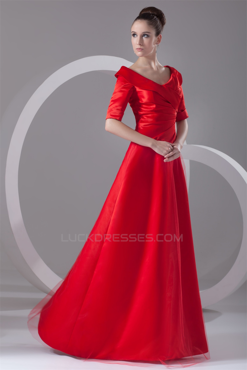 A-Line Half Elbow Length Satin Net Floor-Length Mother of the Bride Dresses 2040162