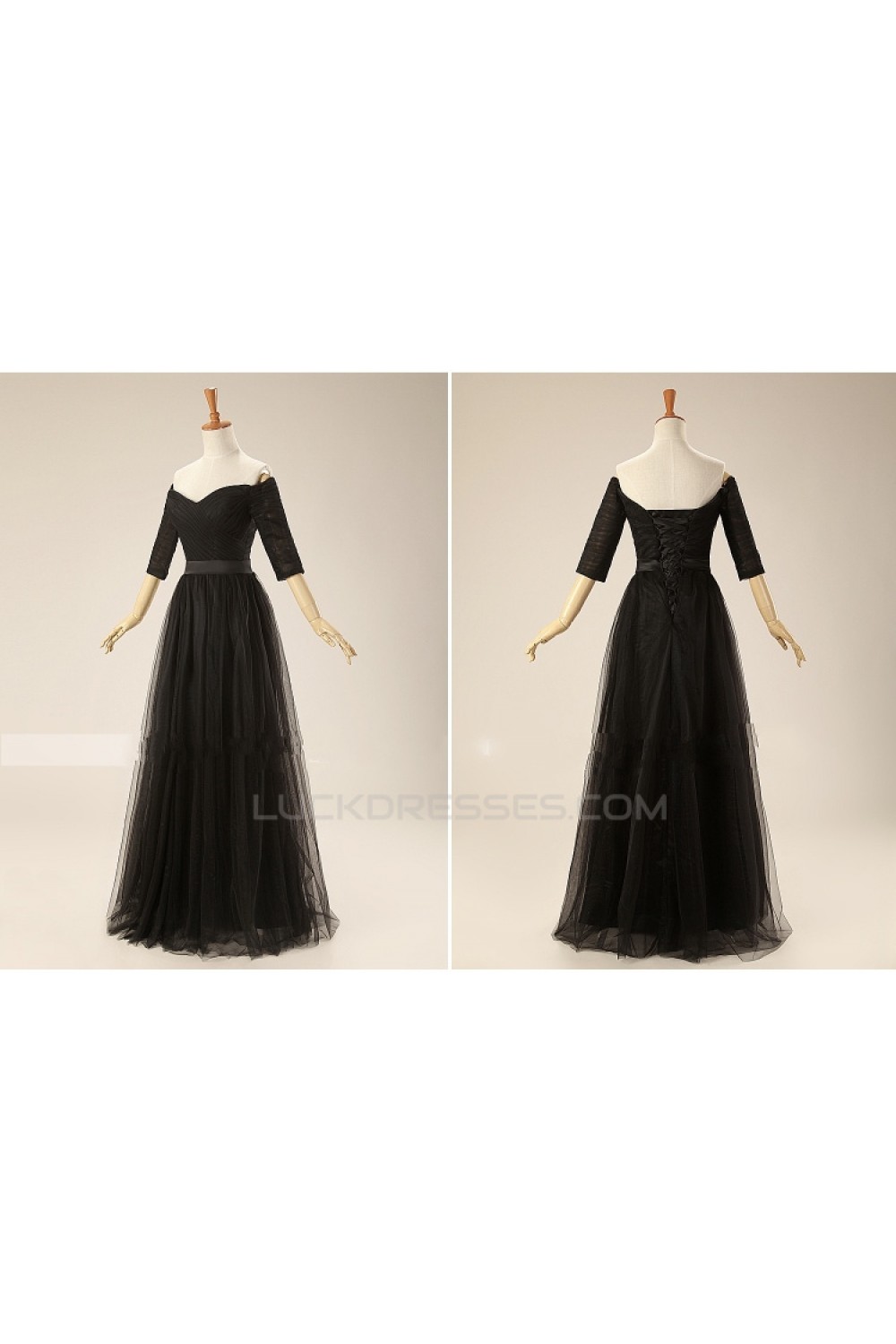 A-Line Half Sleeve Off-the-Shoulder Long Red Tulle Prom Evening Formal Dresses ED011309