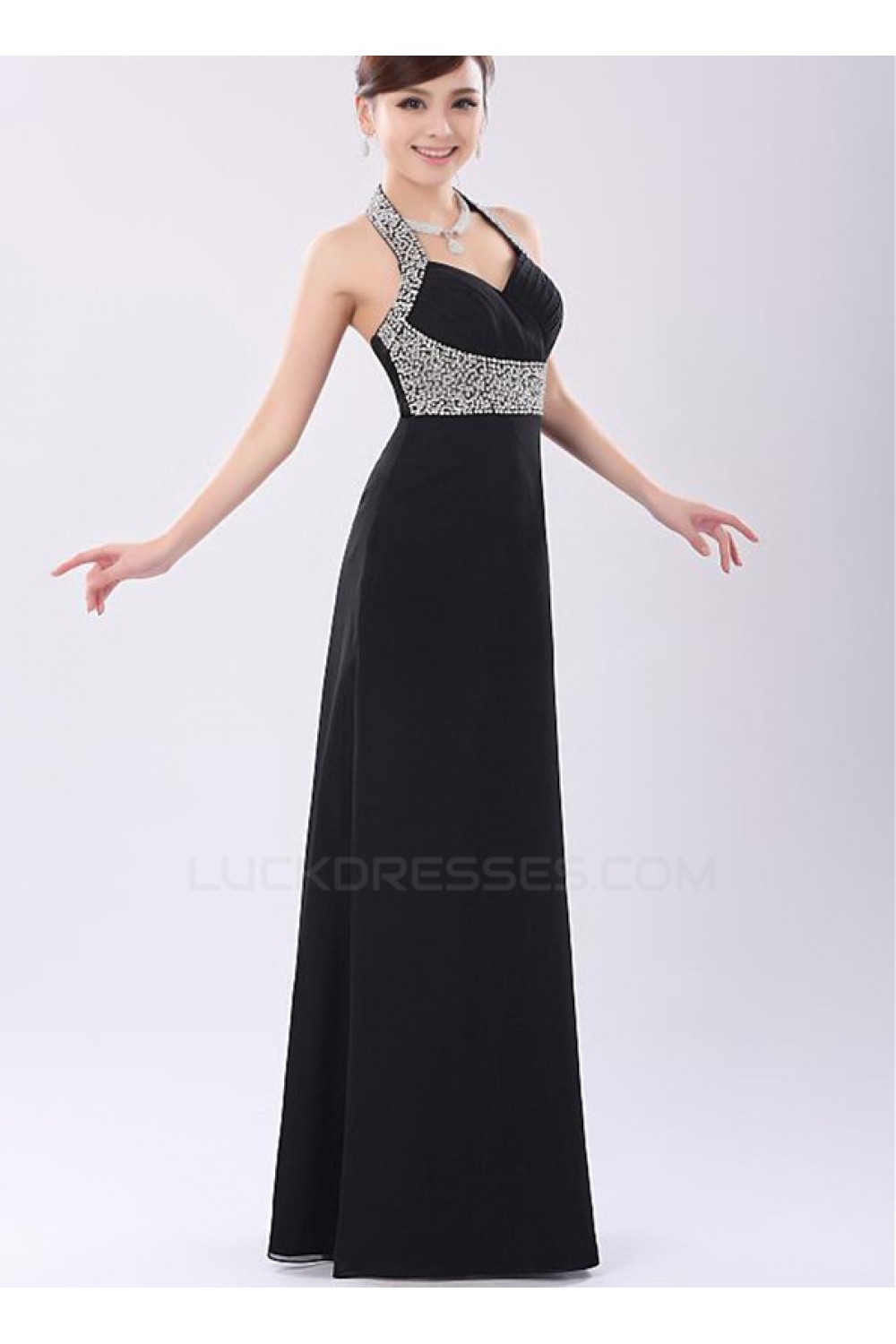 A-Line Halter Beaded Long Black Chiffon Prom Evening Formal Party Dresses ED010522