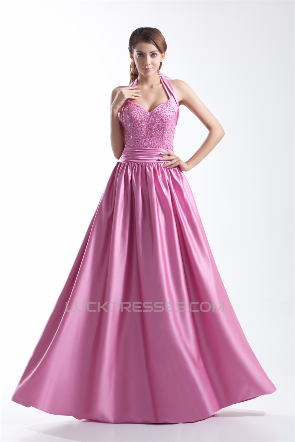A-Line Halter Floor-Length Beading Satin Prom/Formal Evening Dresses 02020765