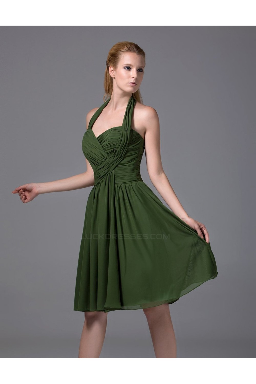 A-Line Halter Green Short Chiffon Bridesmaid Dresses/Wedding Party Dresses BD010191