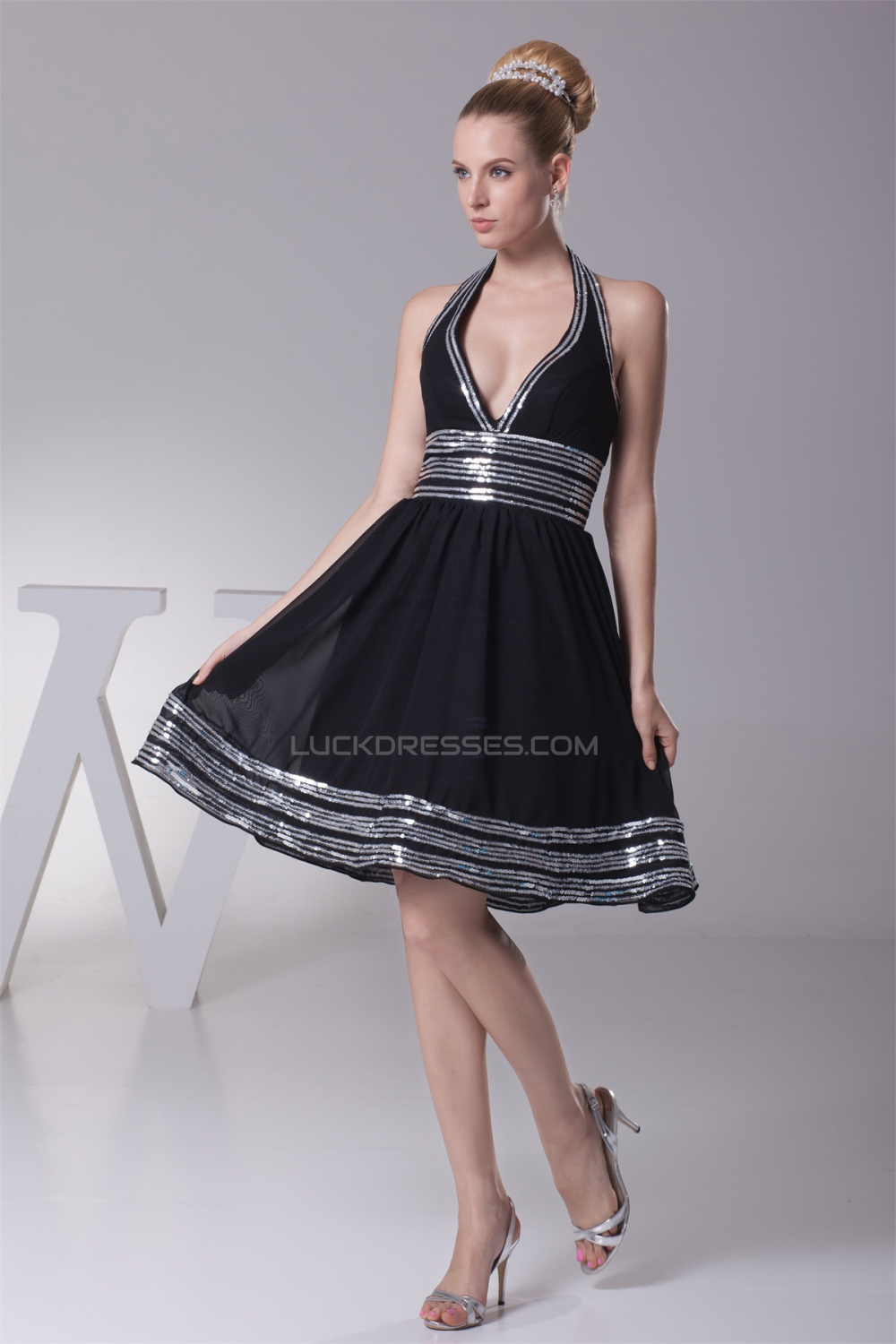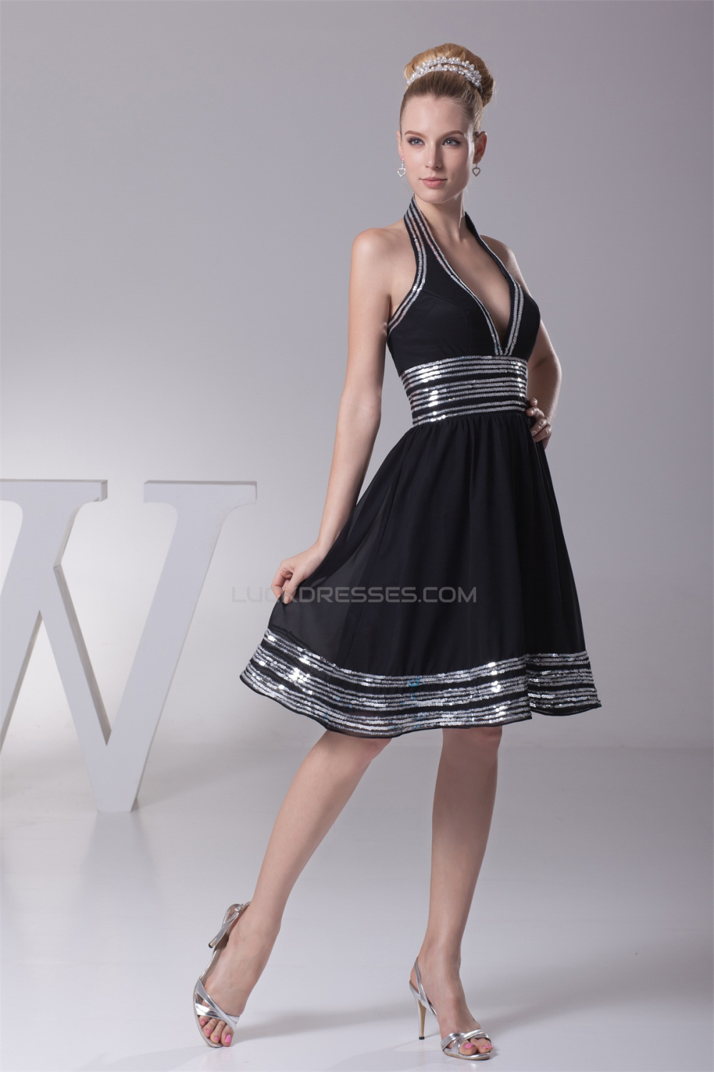 A-Line Halter Sequin Short Black Knee-Length Prom/Formal Evening Dresses 02021072
