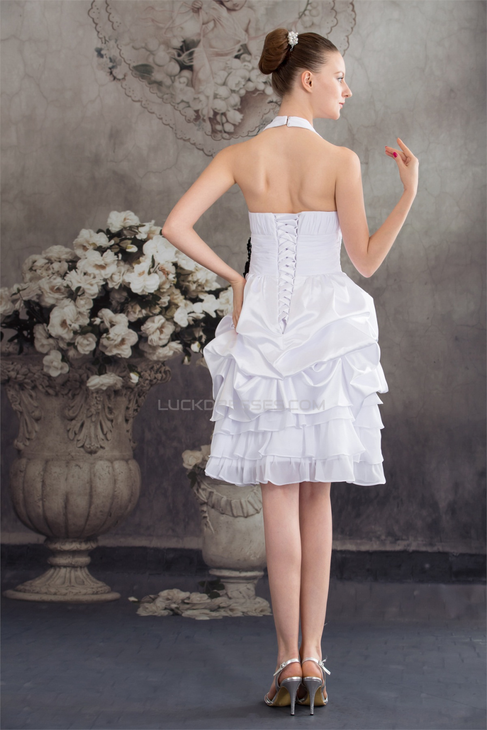 A-Line Halter Short White Homecoming Cocktail Party Bridesmaid Dresses 02021071