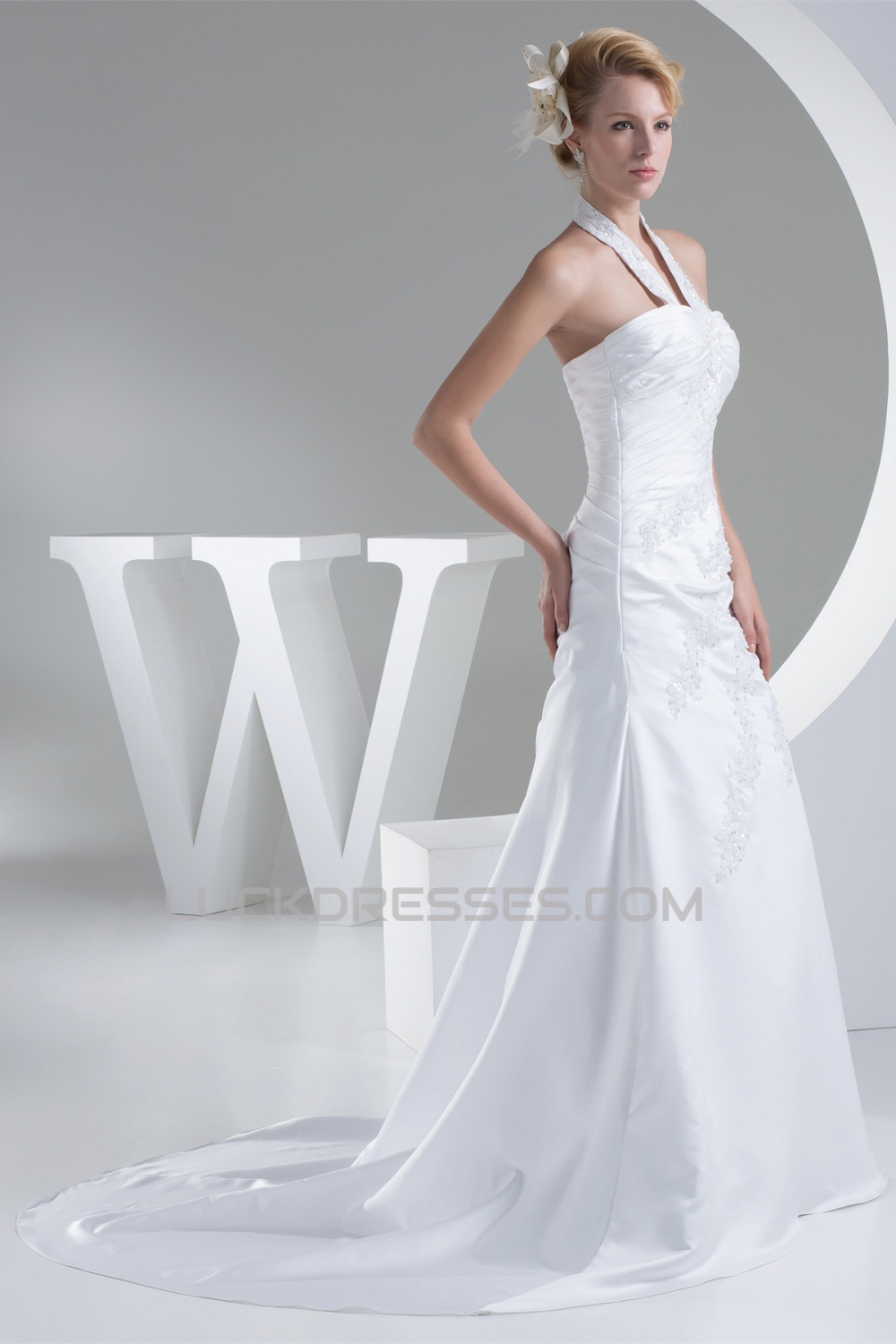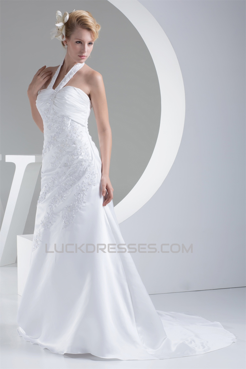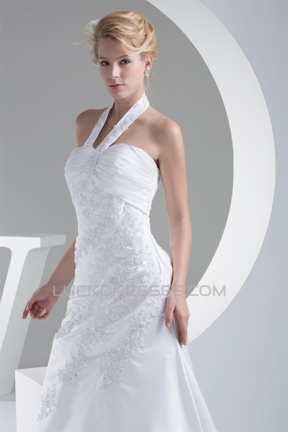 A-Line Halter Sleeveless Satin Lace Sweet Wedding Dresses 2030171