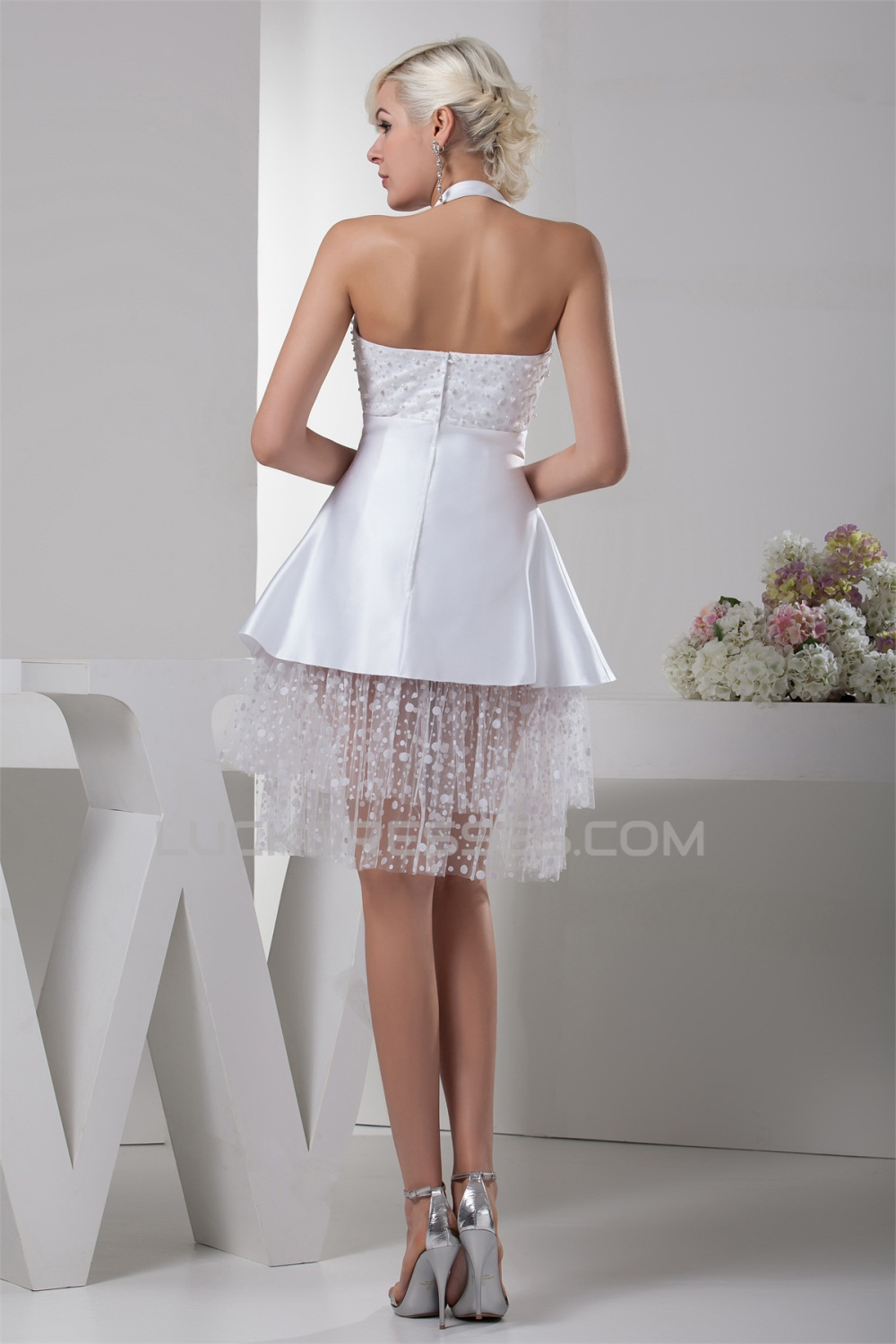 A-Line Halter Sleeveless Short Reception Wedding Dresses 2031520