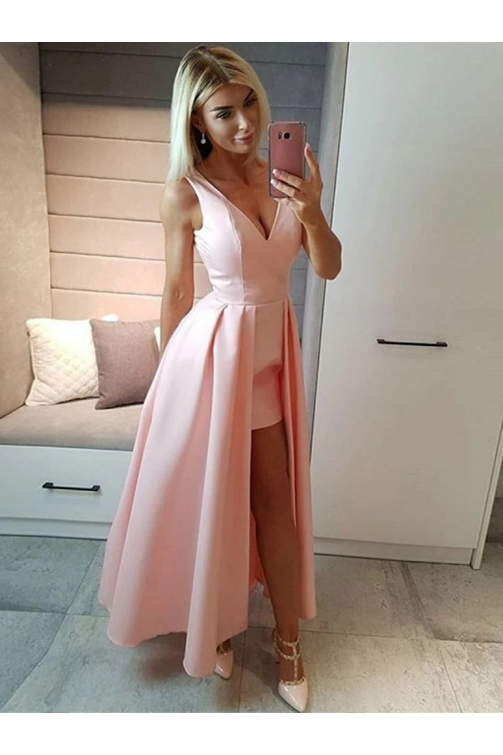 A-Line High Low V-Necck Prom Dresses Formal Evening Gowns 6011254