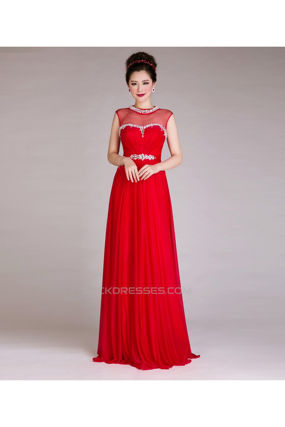 A-Line Jewel Beaded Long Red Chiffon Prom Evening Formal Dresses ED011242