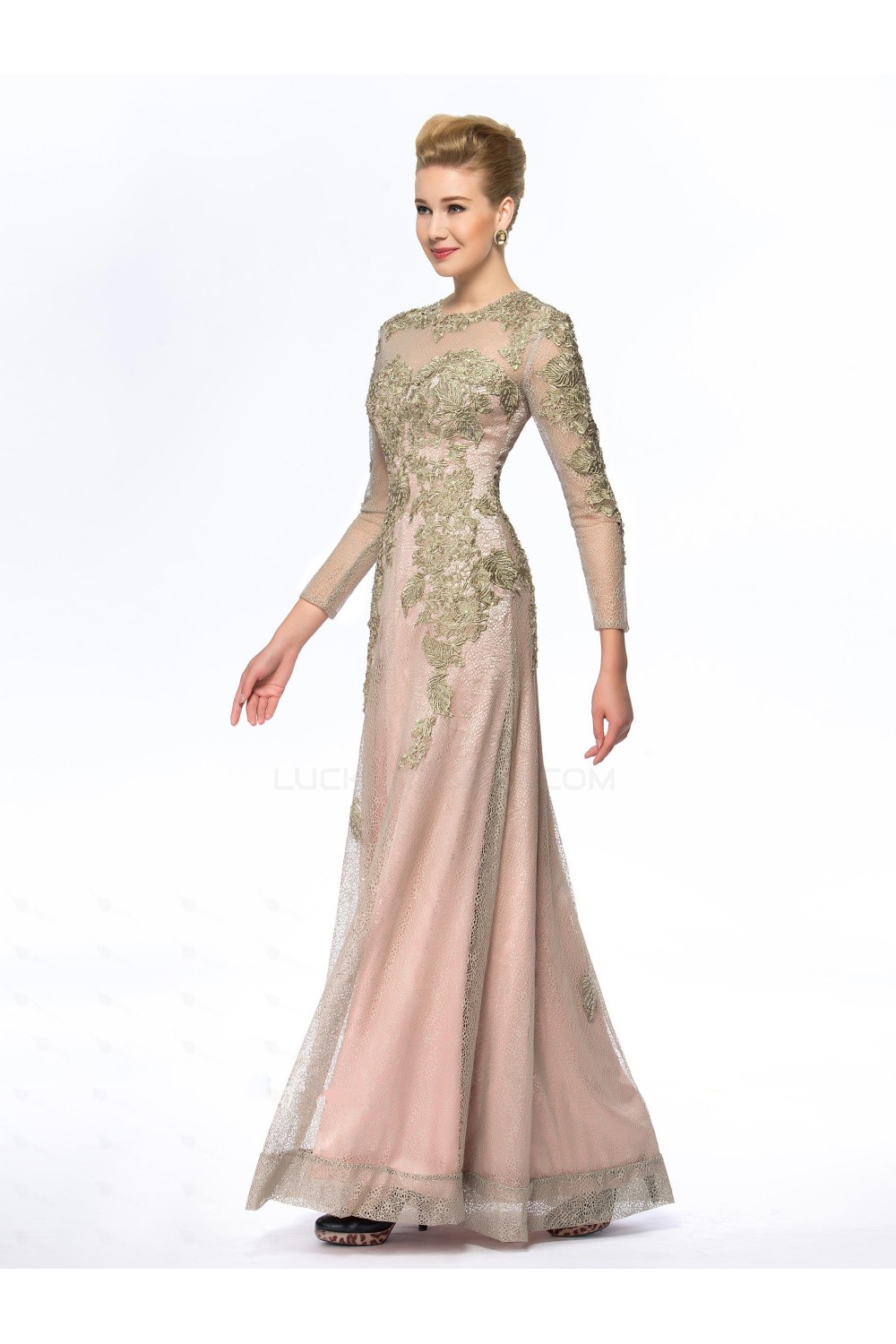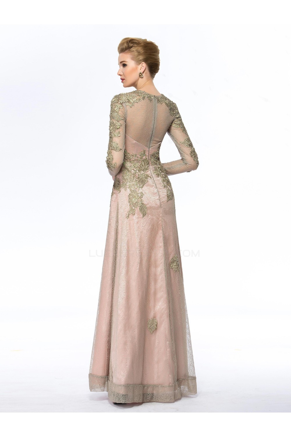 A-Line Jewel Long Sleeve Lace Mother of the Bride Dresses M010069