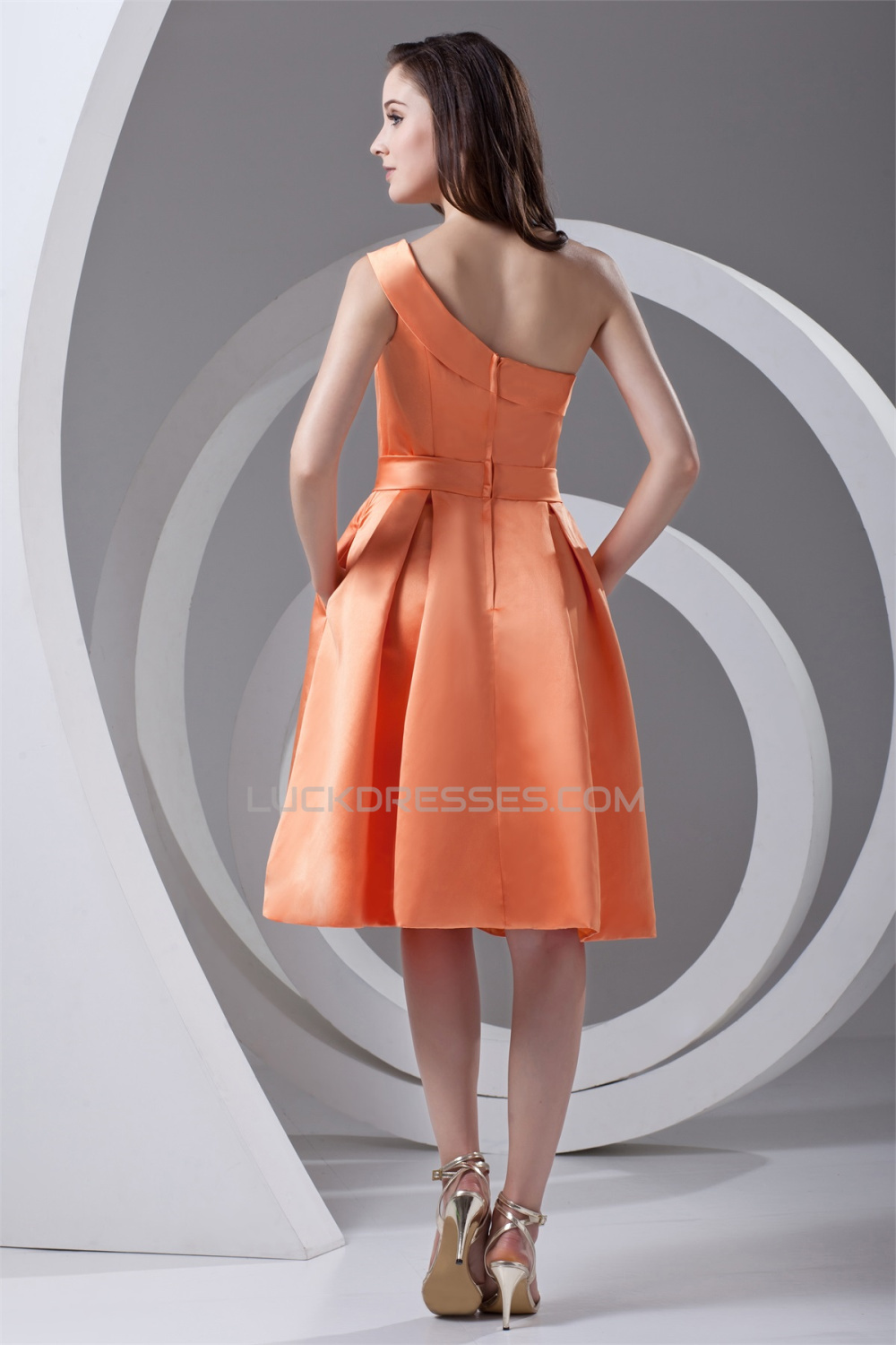 A-Line Knee-Length One-Shoulder Sleeveless Satin Short Bridesmaid Dresses 02010510