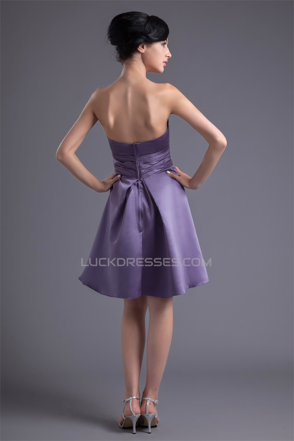 A-Line Knee-Length Sleeveless Satin Handmade Flowers Short Bridesmaid Dresses 02010489